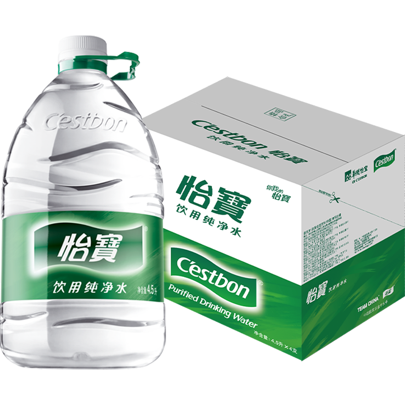 百亿补贴 怡宝饮用纯净水4.5L*4桶*2箱整箱包邮家大桶装水泡茶水
