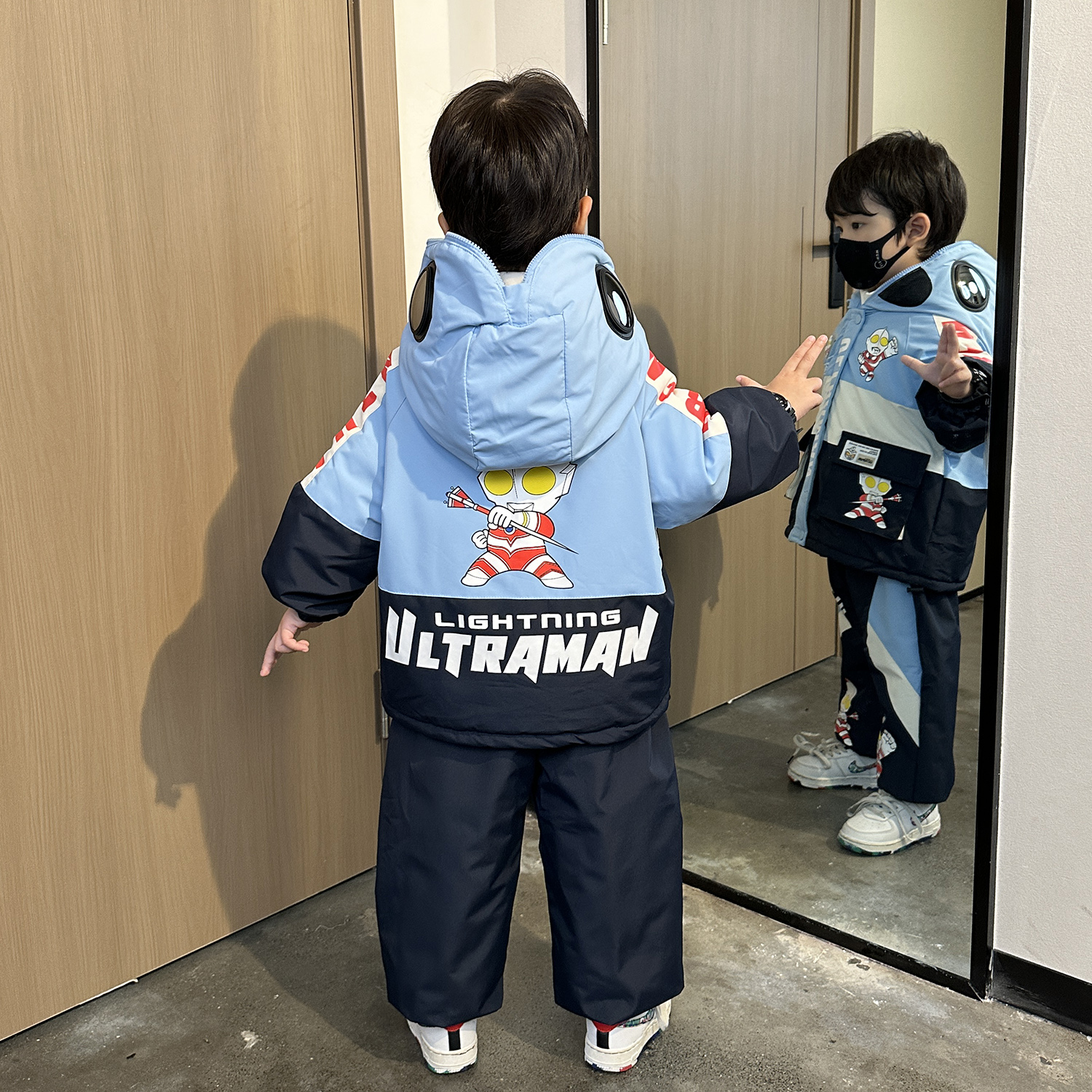 男童冬装加绒套装2025新款奥特曼加厚衣服儿童秋冬季男孩棉服外套