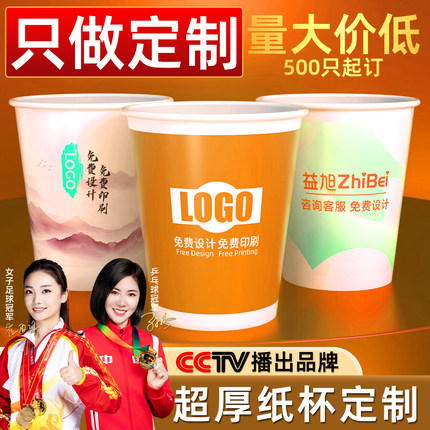 益旭一次性纸杯定制印LOGO橙色多色加厚纸杯子商用批发一次性杯子