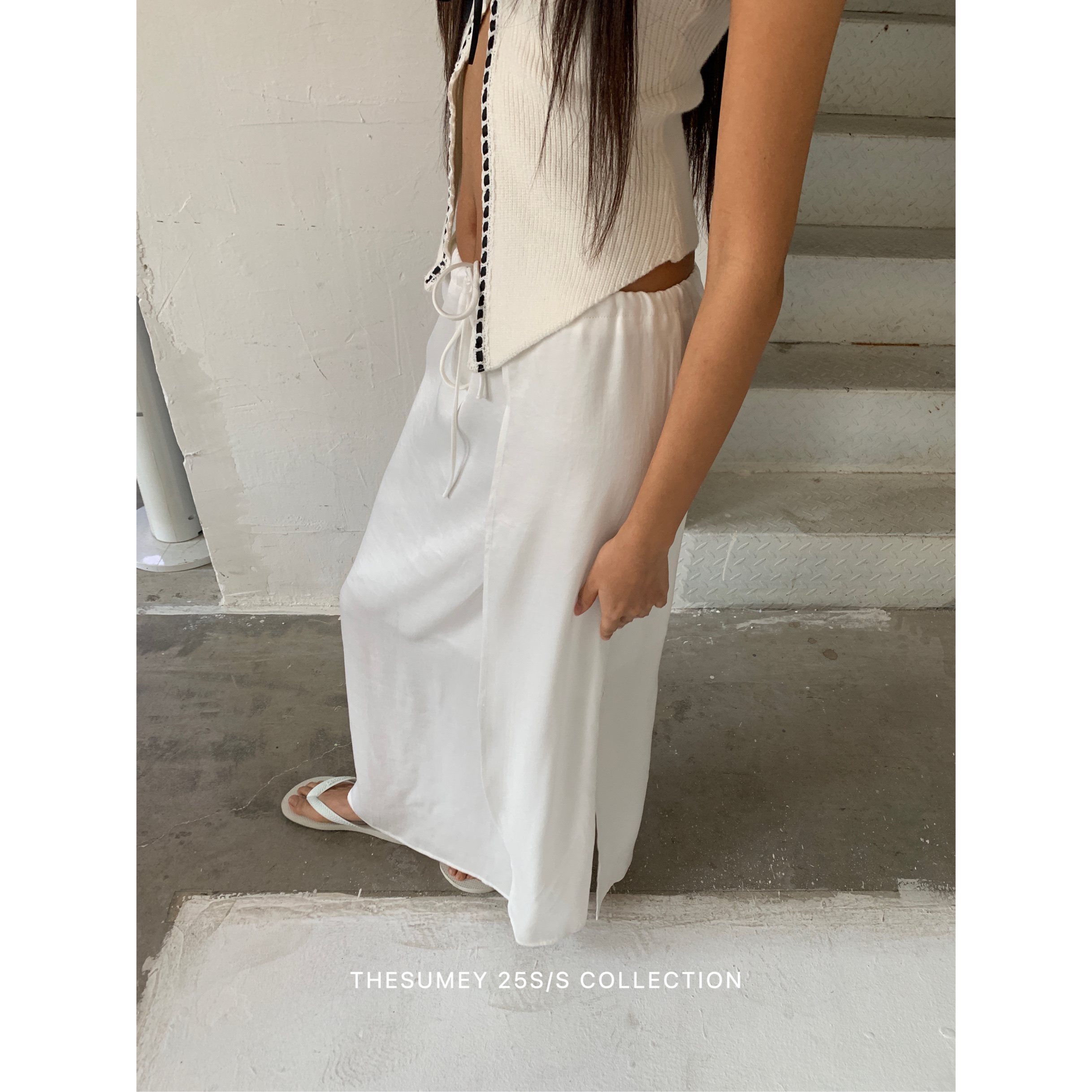 THESUMEY 高腰显瘦系带半身裙女2025春夏新款度假风开叉中长裙子