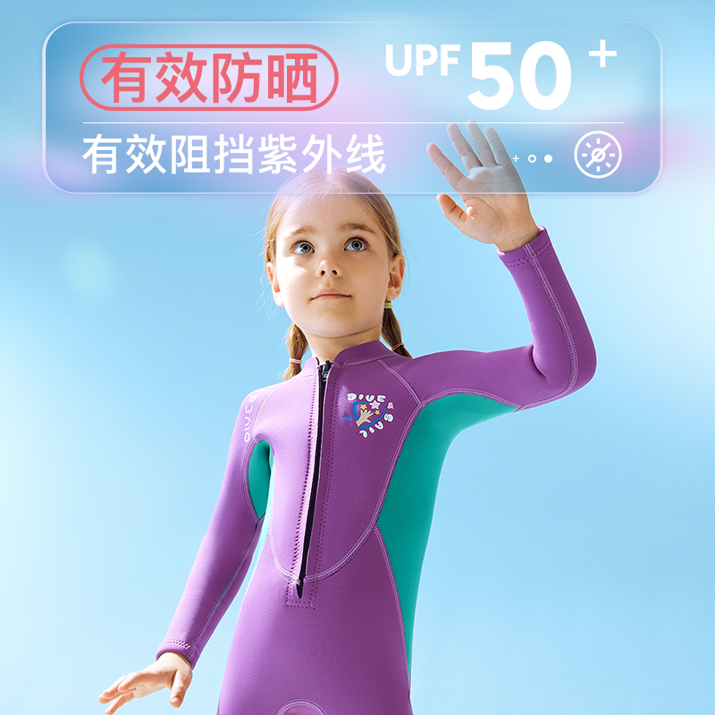 DIVE&SAIL儿童泳衣女孩保暖防寒游泳衣男童中大童长袖防晒潜水服