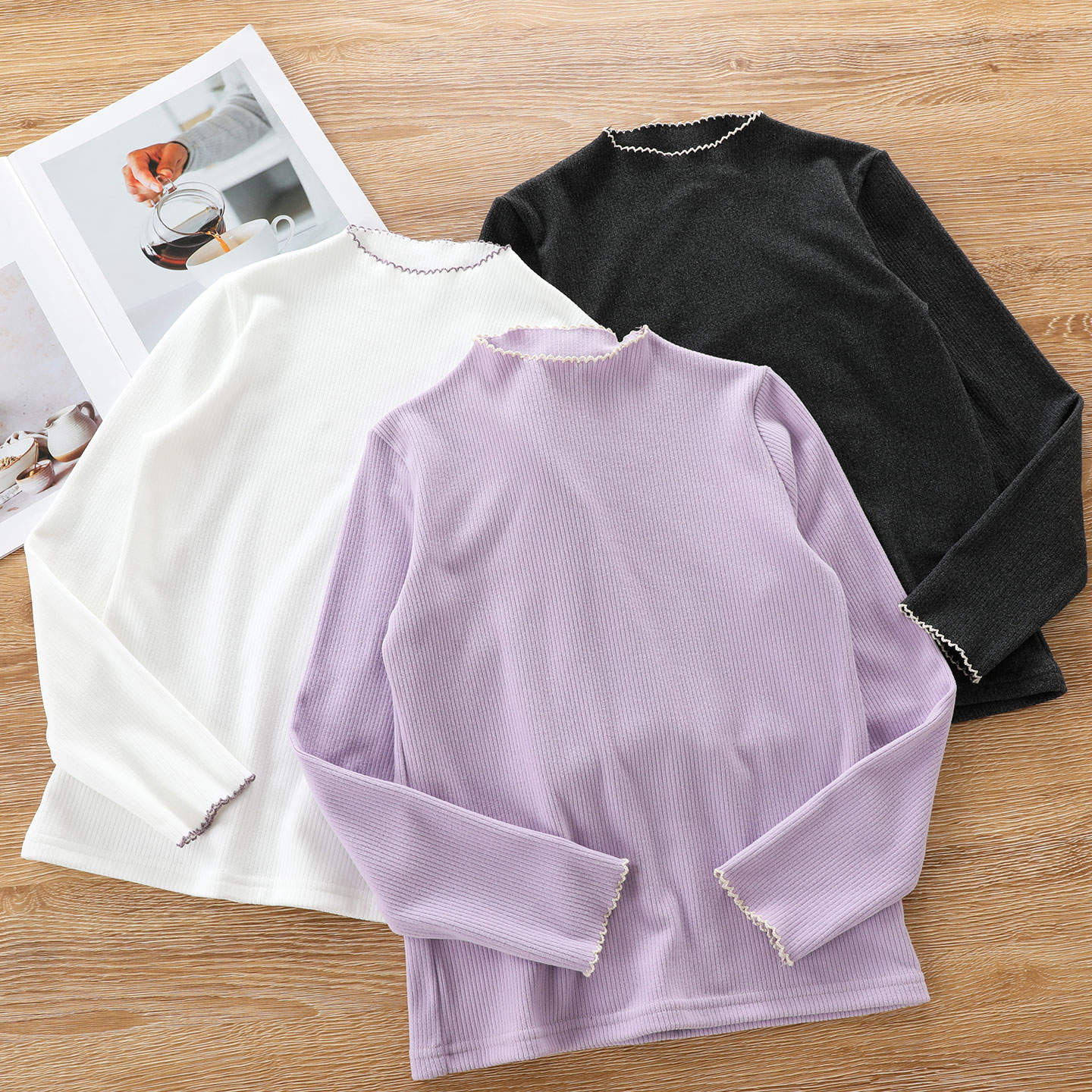 女童打底衫春秋款中大童长袖T恤中领内搭秋衣儿童半高领花边上衣