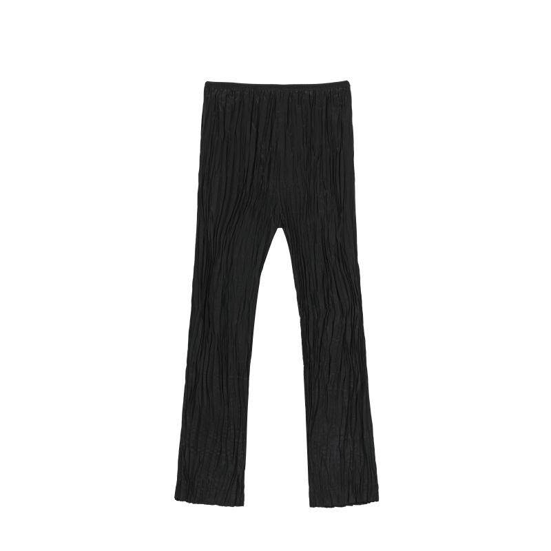 精致Normcore风。褶皱松紧腰宽腿9分裤