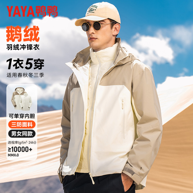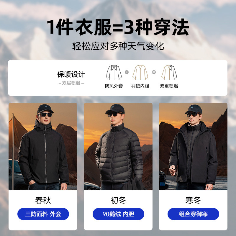 【鹅绒+一衣三穿】鸭鸭冬季羽绒服男可脱卸内胆三防冲锋羽绒服男