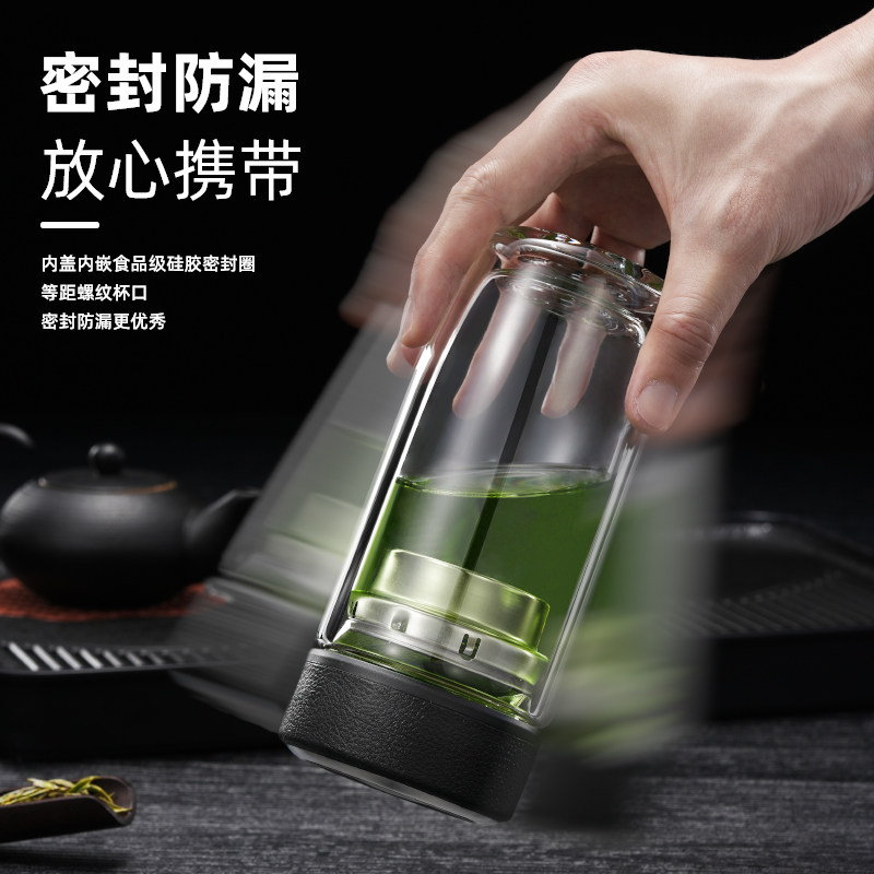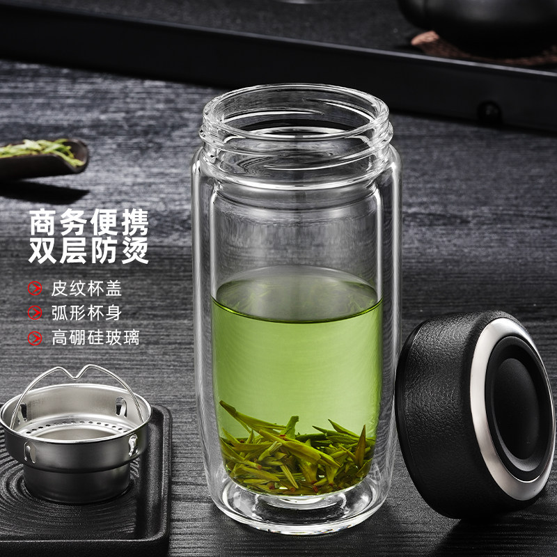 双层鹅蛋玻璃杯茶水分离泡茶杯子男士防烫隔热水杯耐高温带盖印字