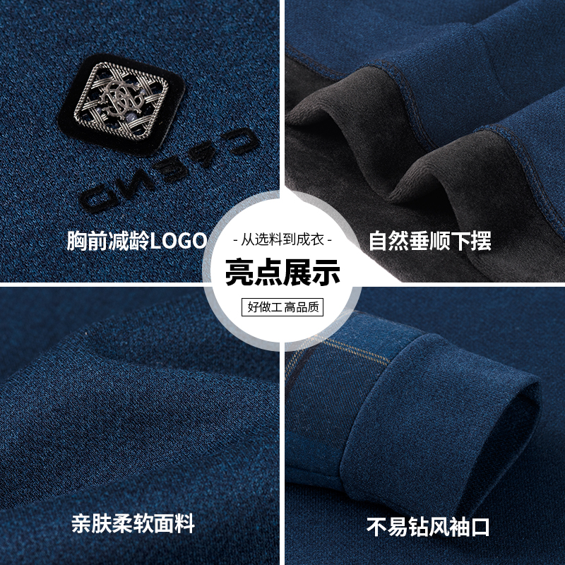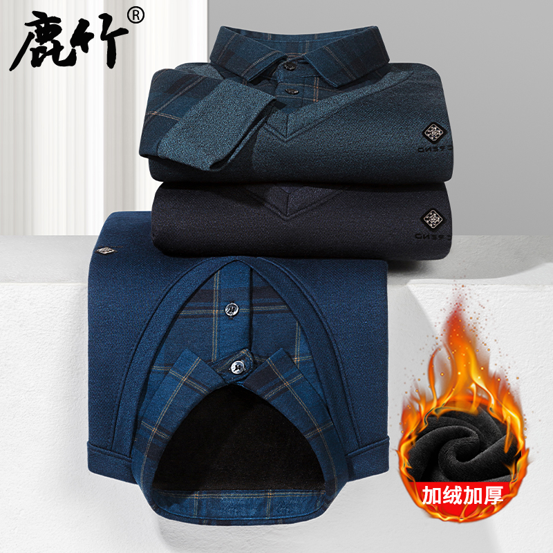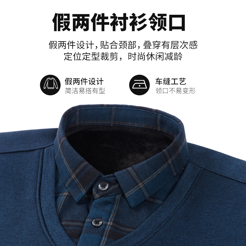爸爸冬装长袖衬衫加绒加厚新款中年男士休闲假两件上衣中老年男装