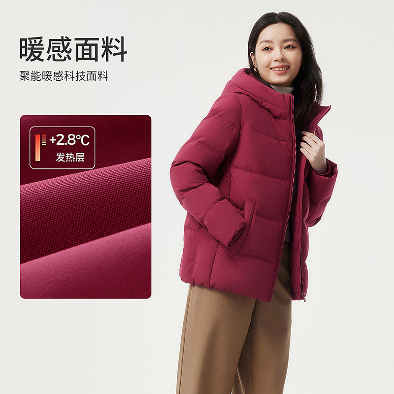 坦博尔中老年款新年红羽绒服女短款连帽妈妈款冬季宽松保暖外套
