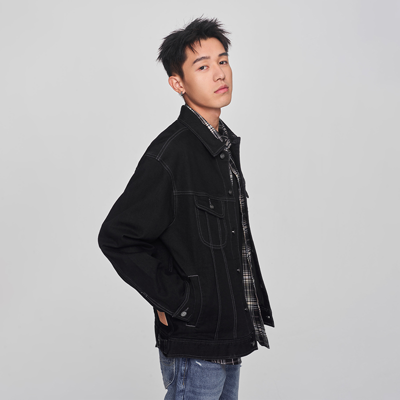 Lee商场同款舒适版黑色暖岩恒温男保暖牛仔夹克外套LMT0078252VL