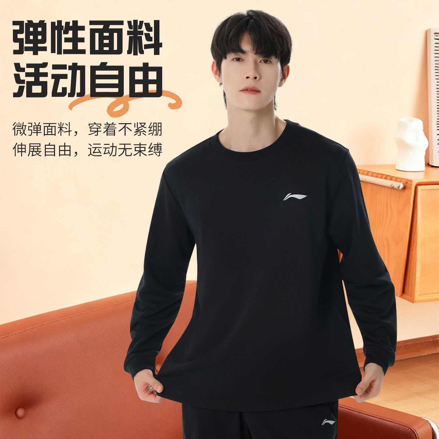 李宁运动套装男2025新款跑步运动服秋冬加绒加厚休闲卫衣裤子长袖