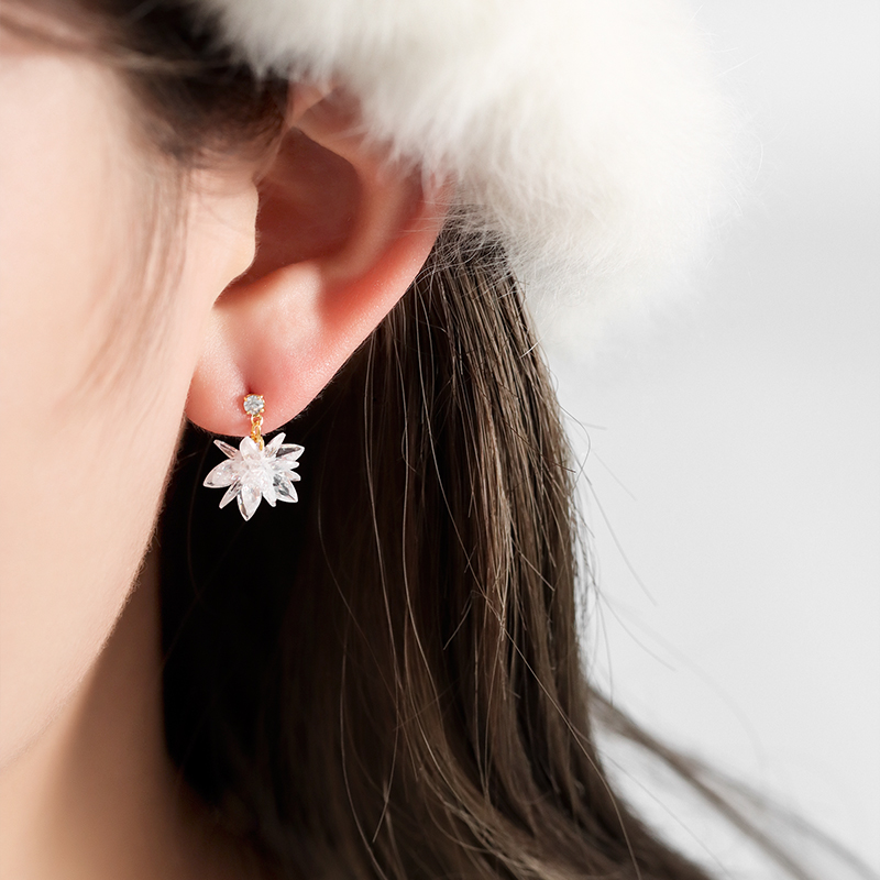 OSEWAYA耳钉立体白色雪花水晶冰花耳环女高级感无耳洞耳夹小香风