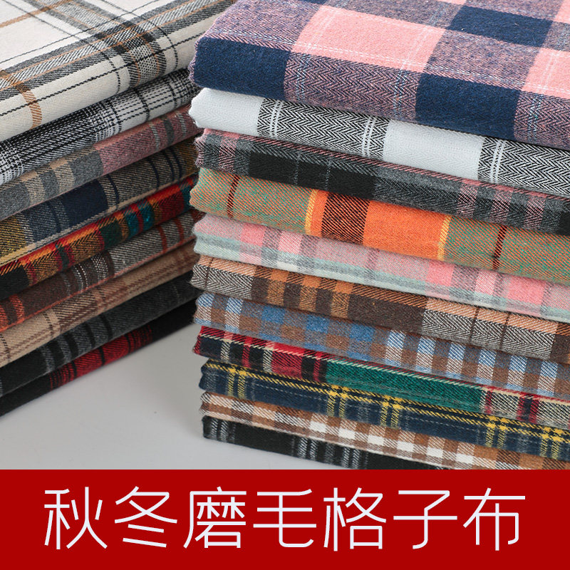 磨毛格子衬衫布料 英伦风格纹裙子外套裤子jk服装面料秋冬手工diy
