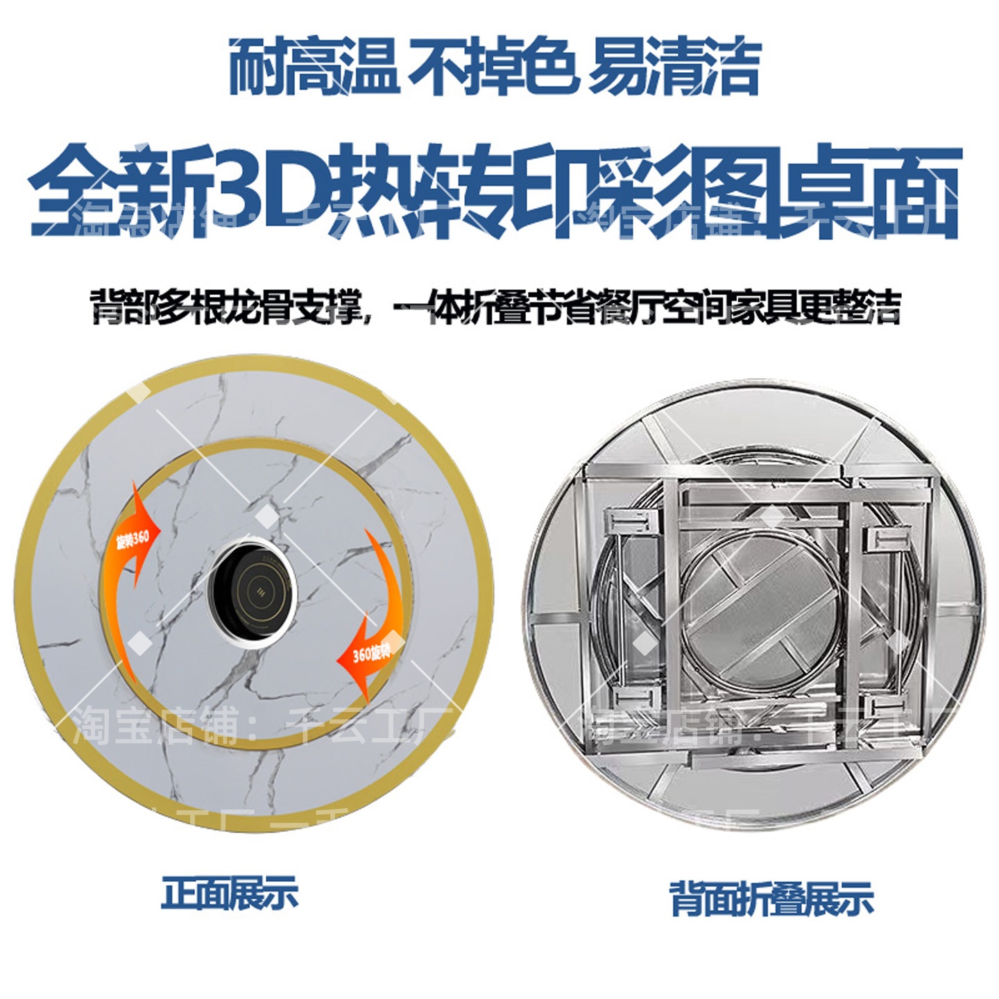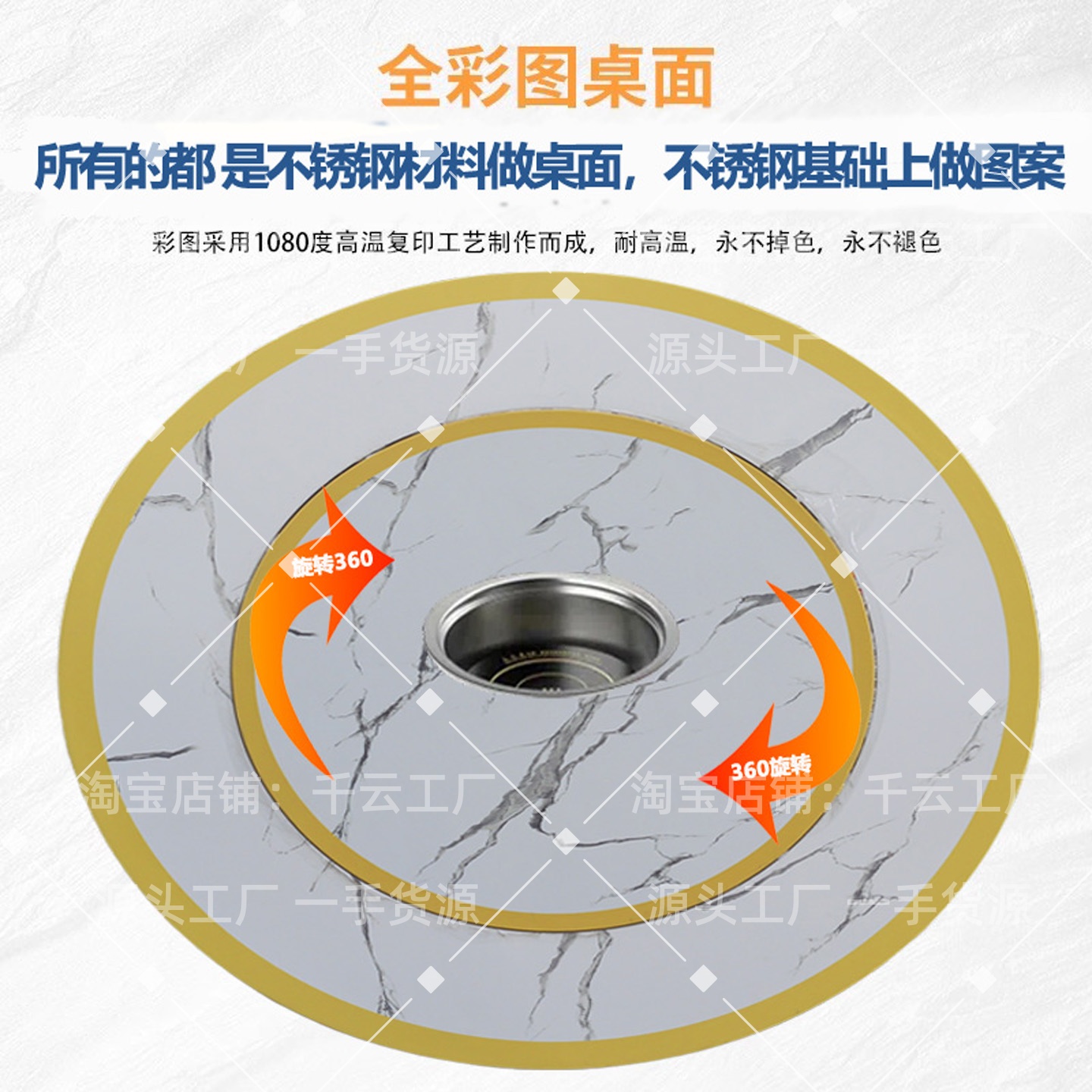 不锈钢转盘圆桌送电磁炉火锅桌家用餐桌饭桌饭台商用圆台折叠免装
