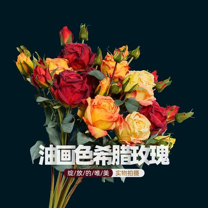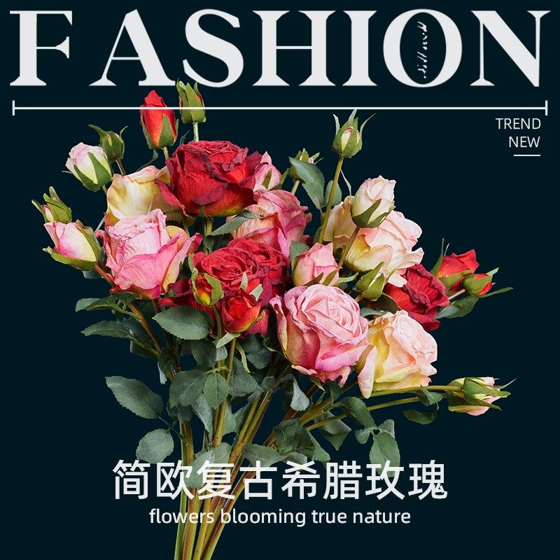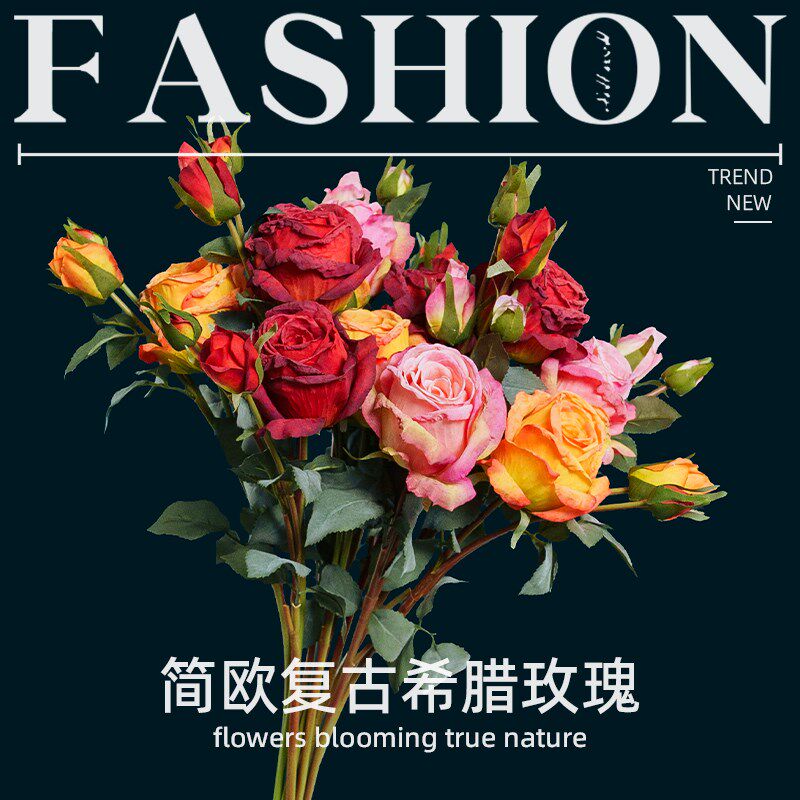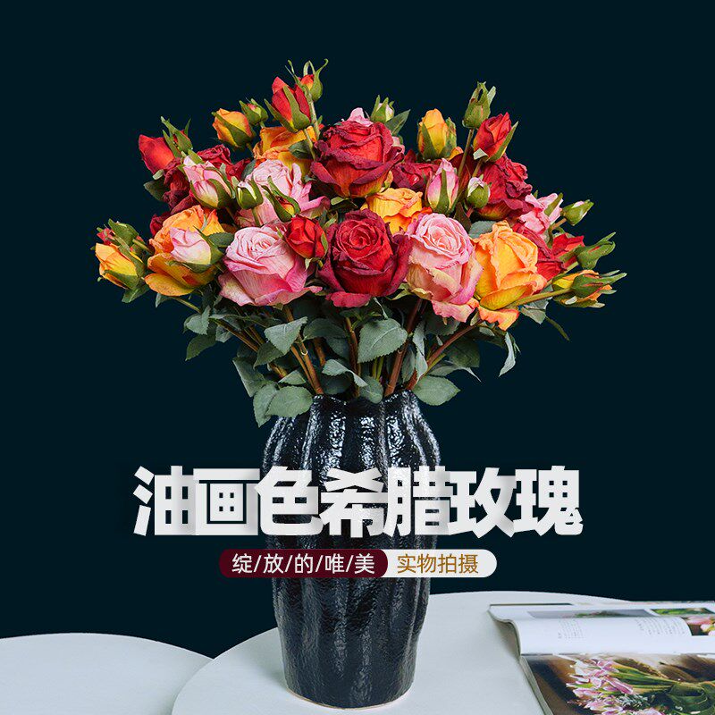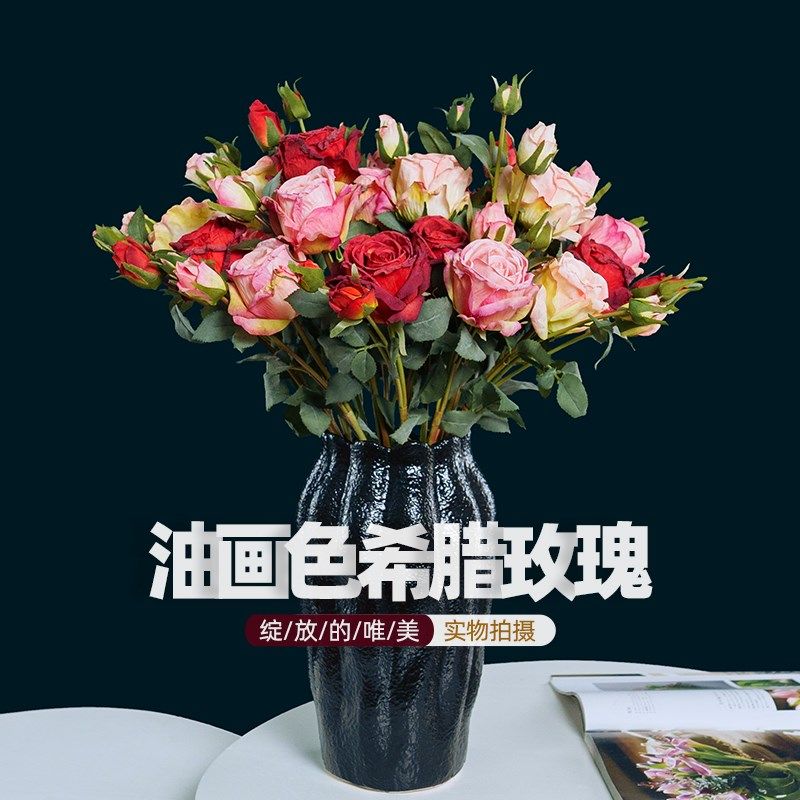 新 油画风玫瑰假仿真摆设档客厅绢艺欧式装饰卉