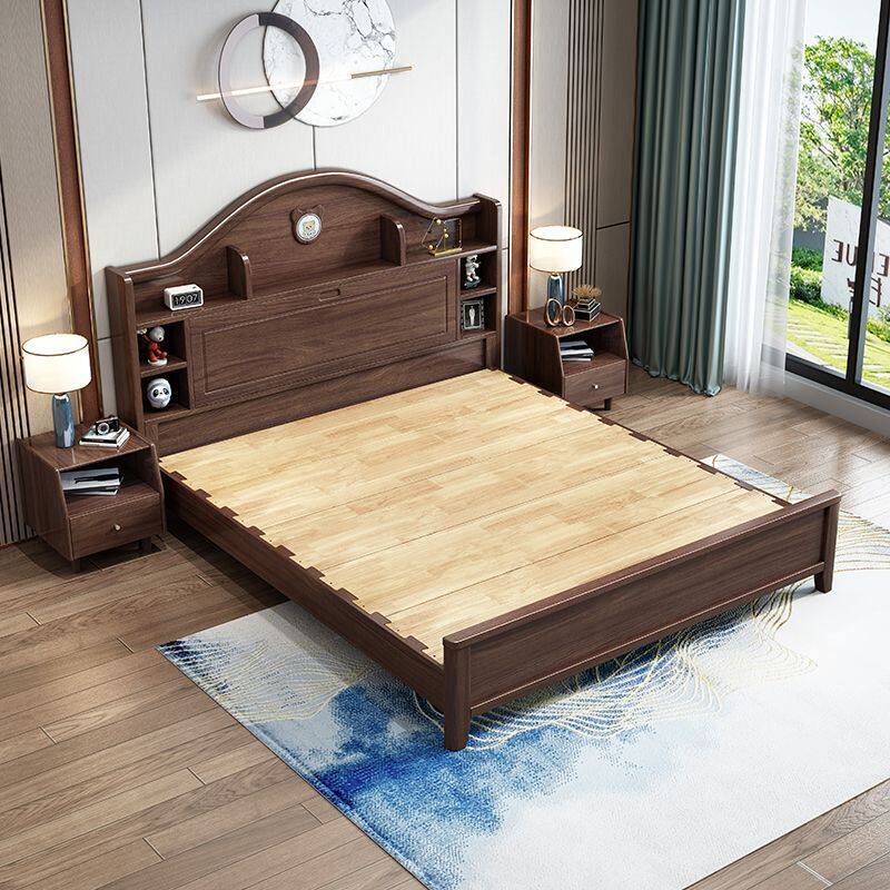 现代中式简约胡桃木实木床主卧双人床高箱储物儿童床卧室成套家具
