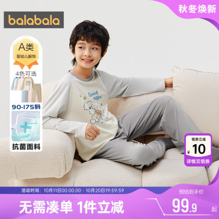巴拉巴拉睡衣春秋儿童家居服套装