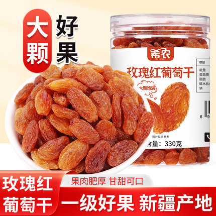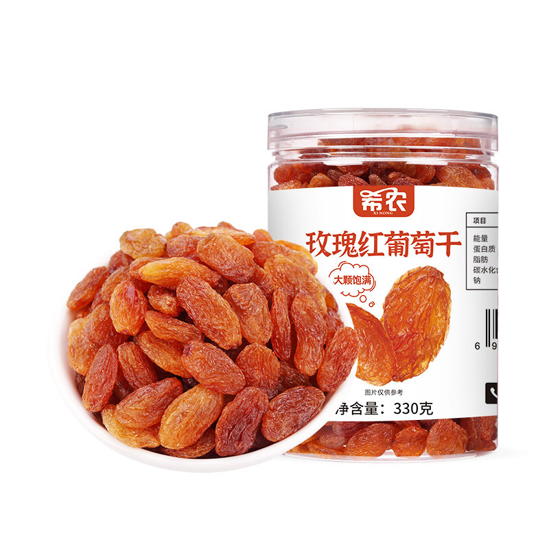 希农玫瑰红葡萄干罐装330g大颗粒新疆吐鲁番一级大果提子坚果零食