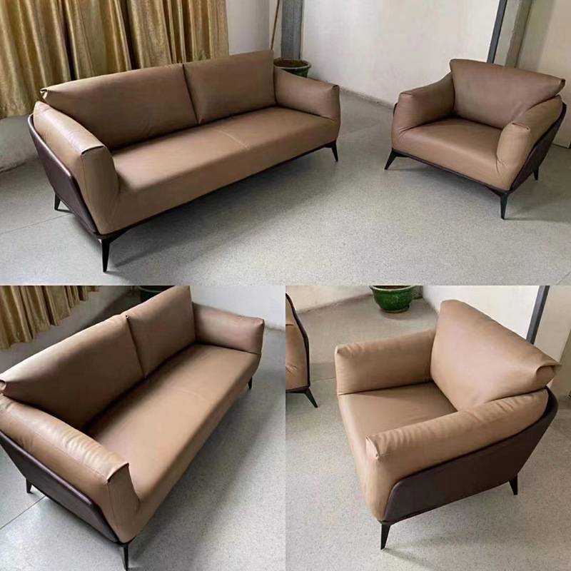 办公沙发茶几组合皮艺简约现代商务接待办公室沙发意式极简三人位
