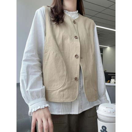 韩系风琴褶蕾丝花边衬衫叠穿马甲