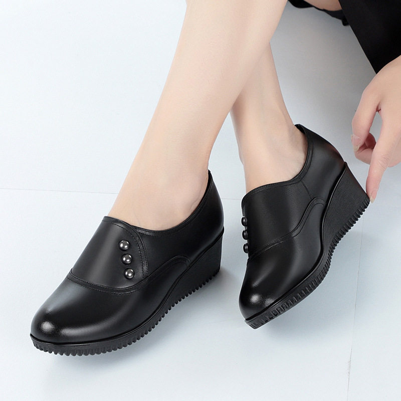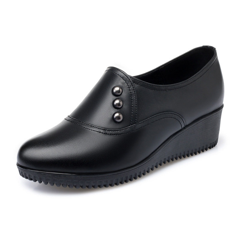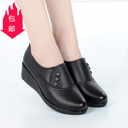 春秋款妈妈鞋皮鞋软底真皮深口单鞋女中跟中老年老年女鞋坡跟鞋子