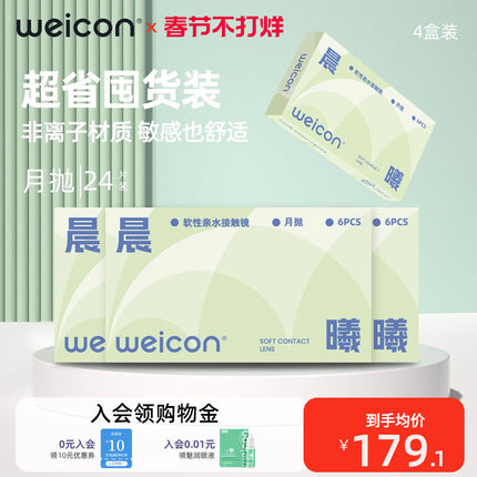 卫康晨曦月抛透明近视隐形眼镜6片4盒水润透氧非离子囤货装