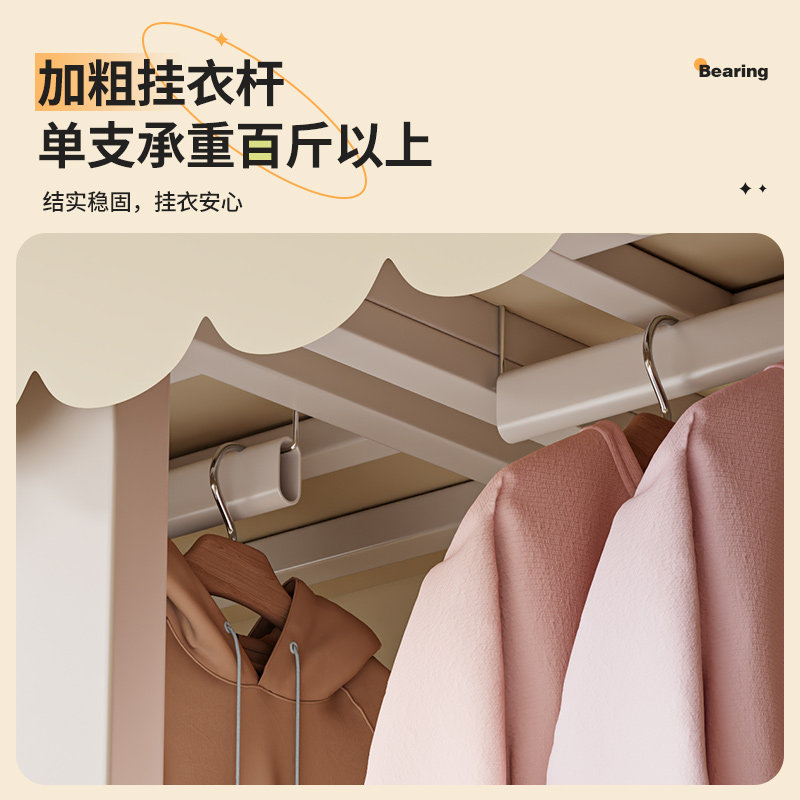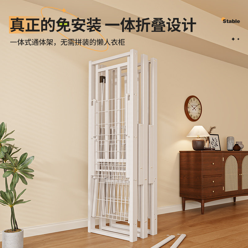 简易布衣柜卧室家用新款一体式免安装出租房用加粗全钢架结实耐用