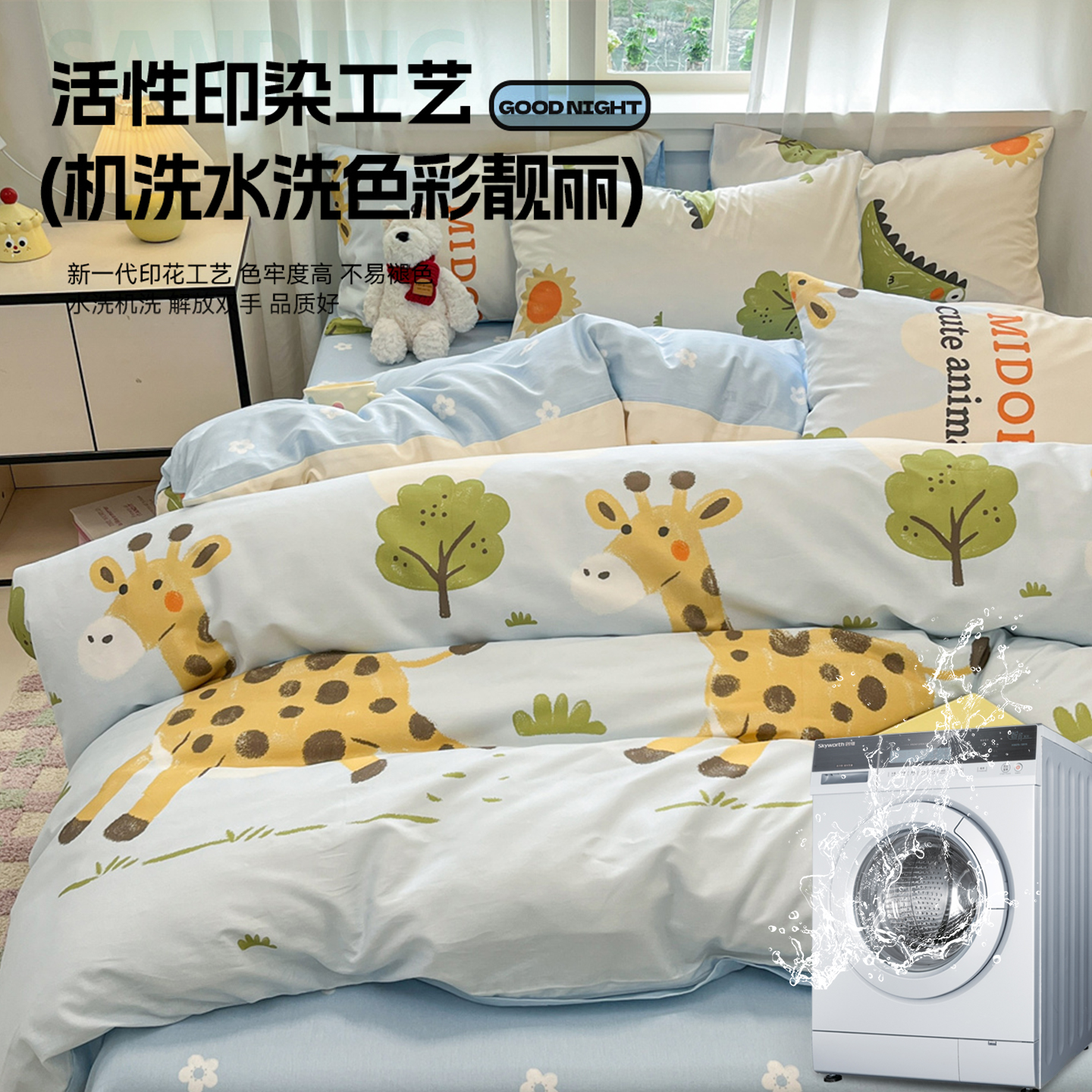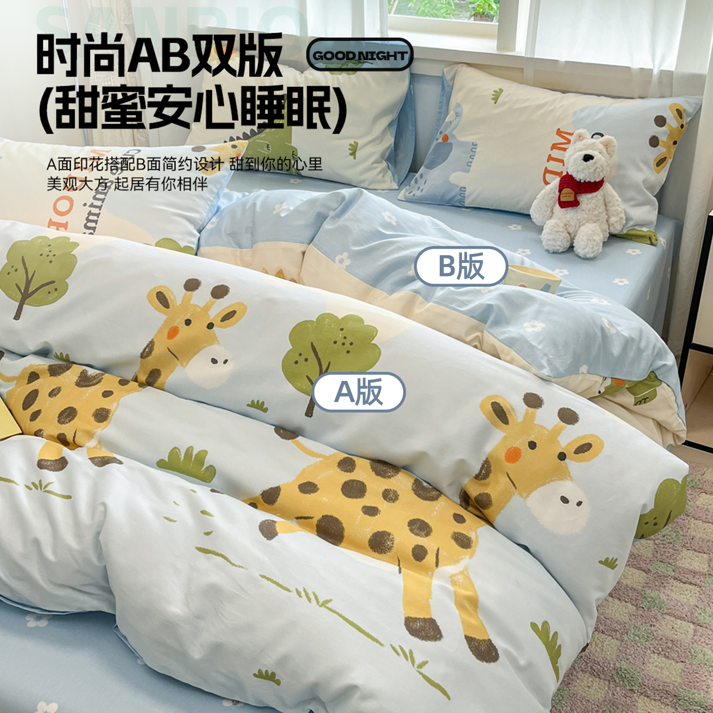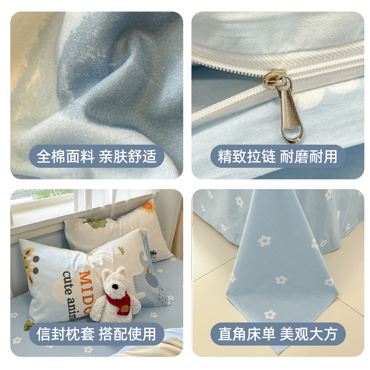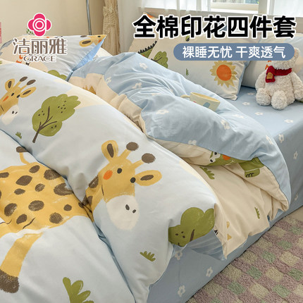 卡通儿童纯棉床上四件套100全棉学生宿舍床品被套床单三件套床笠