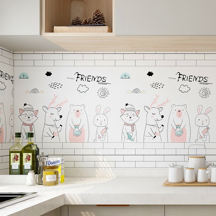 可移除厨房卡通墙纸防油耐高温墙贴图案柜门装饰用翻新防水墙壁纸