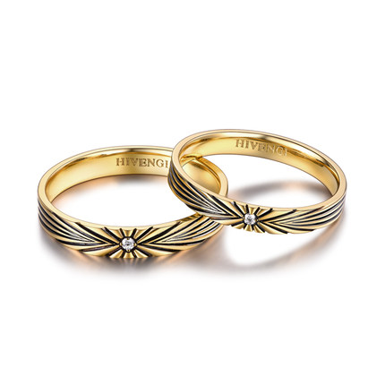 HIVENGI/海梵纪钻石情侣对戒18K金戒指彩金钻戒复古款 结婚定情