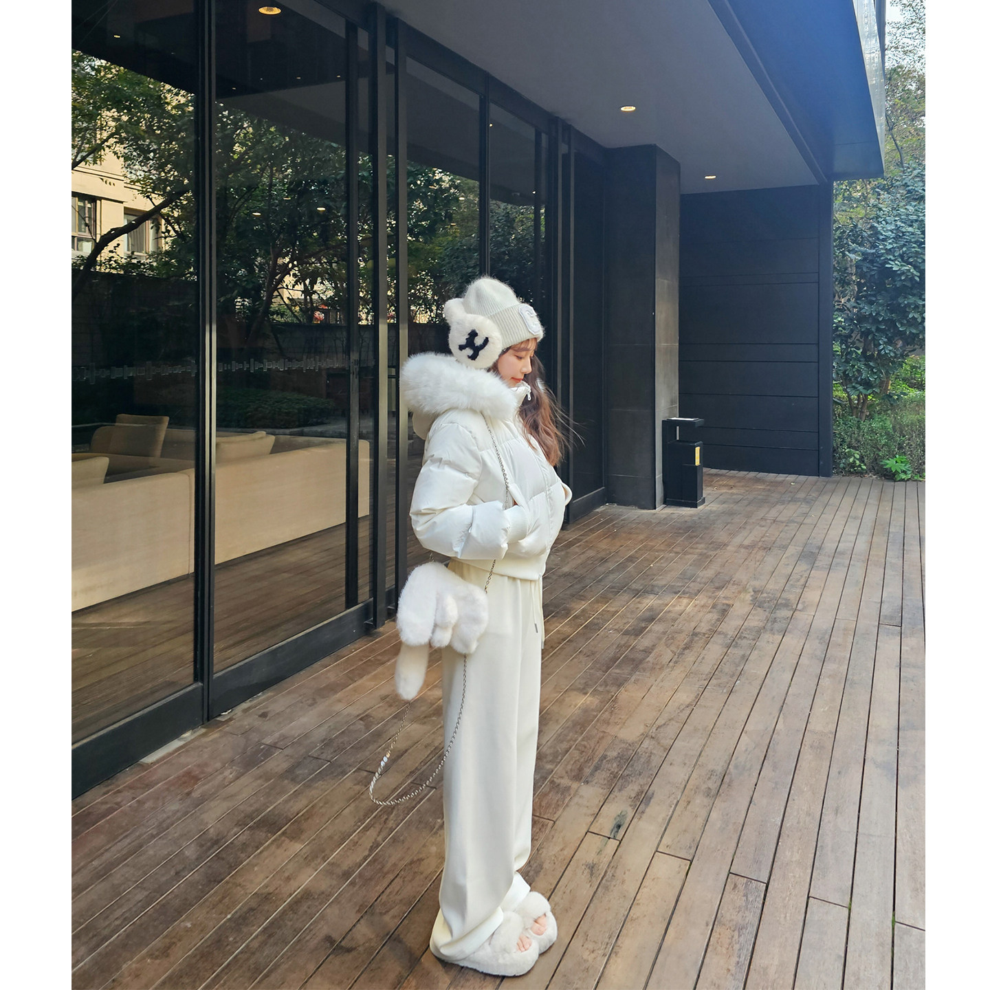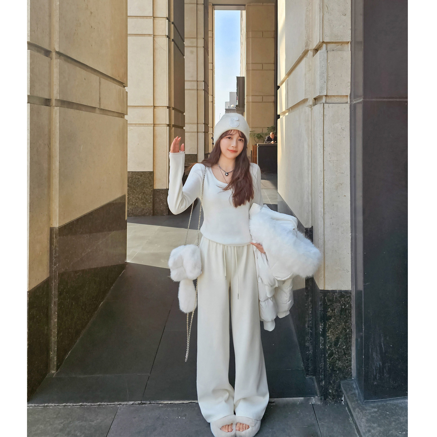 小个子冬加绒糯米裤女垂感显瘦抽绳直筒休闲裤韩系慵懒感拖地裤