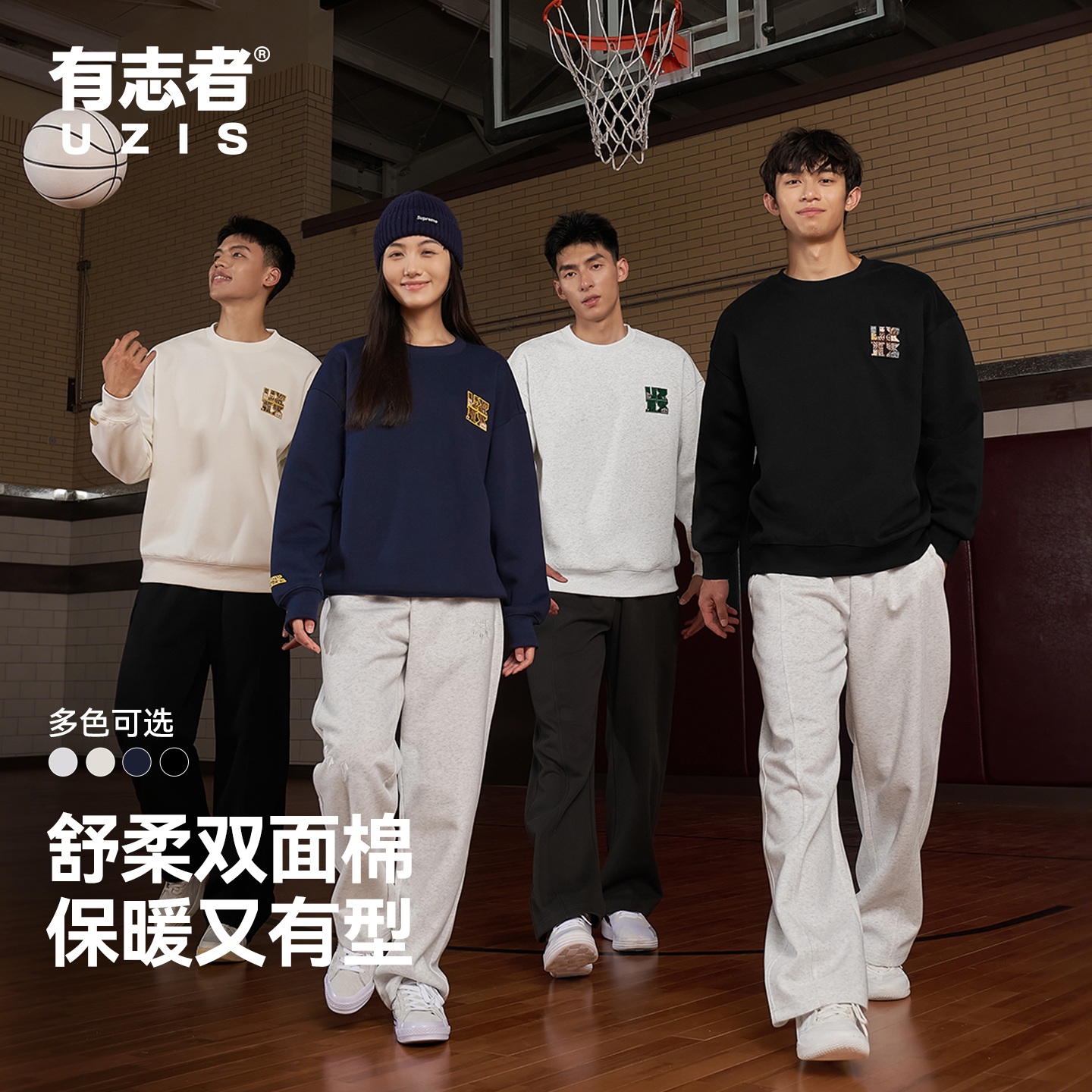 有志者UZIS美式运动卫衣男秋冬加厚保暖篮球训练圆领刺绣上衣绣野