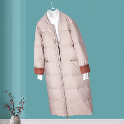 新款羽绒服女士棒球领显瘦过膝网红韩版长款宽松时尚白鸭绒外套潮