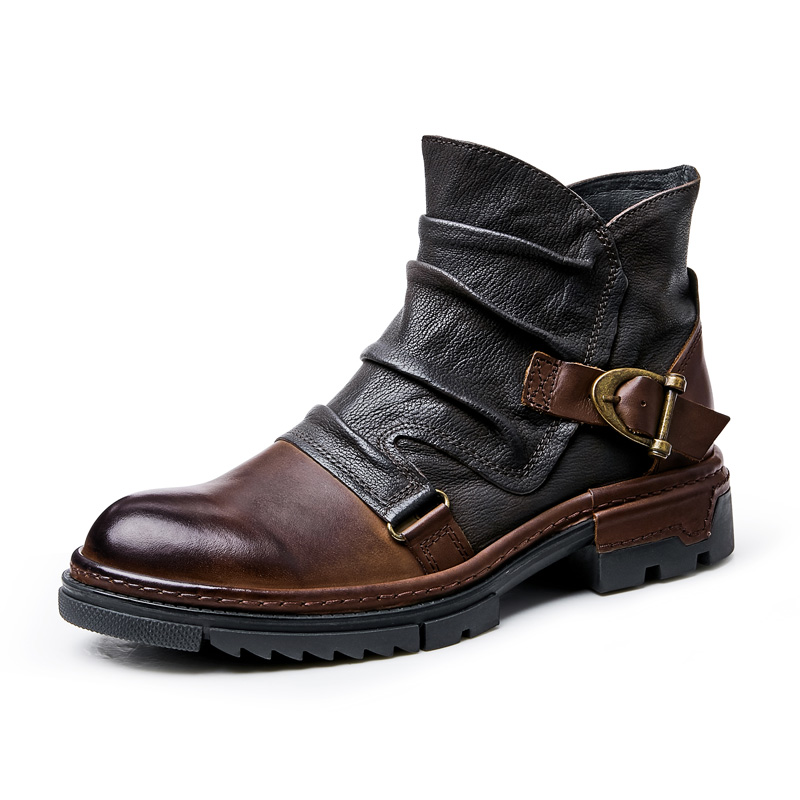 机车靴子男真皮靴英伦复古一脚蹬马丁靴男款加绒牛皮切尔西靴短靴