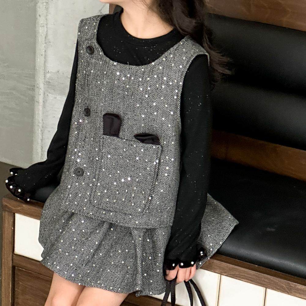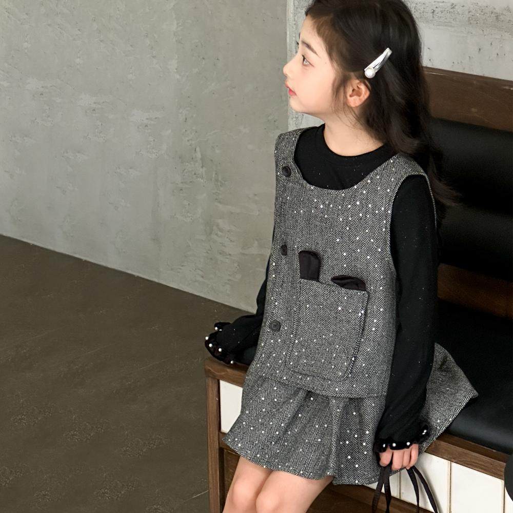女童套装秋装2026新款儿童小香风三件套春秋款女大童洋气背心短裙