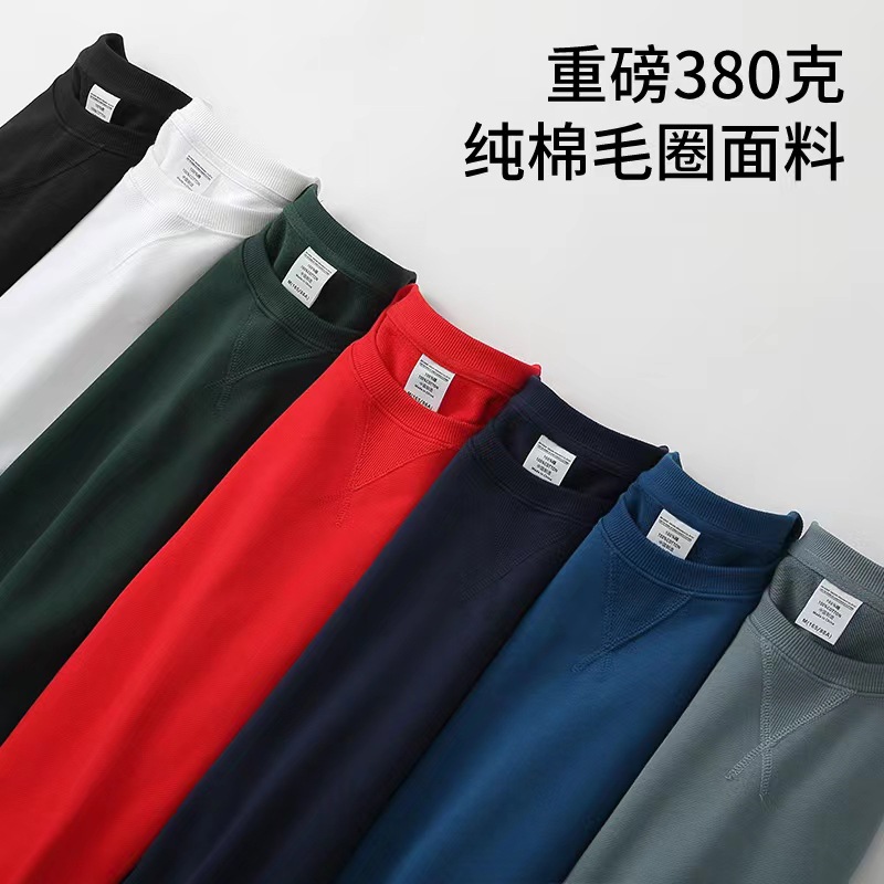 380g重磅纯棉毛圈卫衣男 美式复古纯色长袖圆领卫衣男女同款