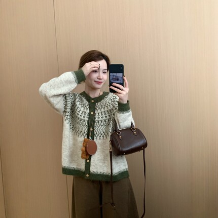 此外圆领提花撞色针织开衫