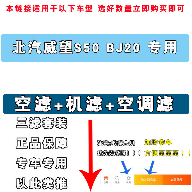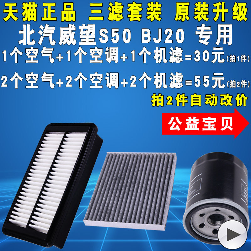 适配北汽威望威旺S50 BJ20机油滤芯空调空调滤清器格三滤原厂升级
