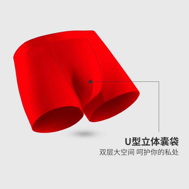 红色本命年大码男士内裤柔软莫代尔纯棉桑蚕丝抗菌裆平角裤2025