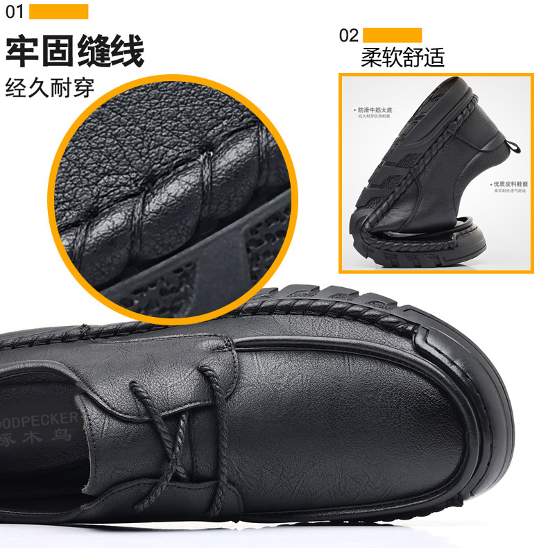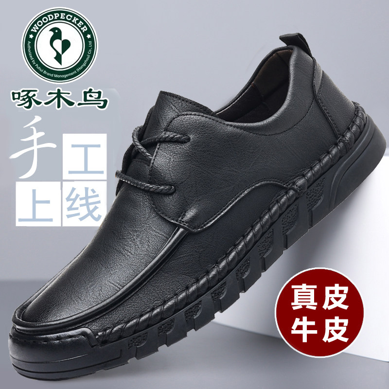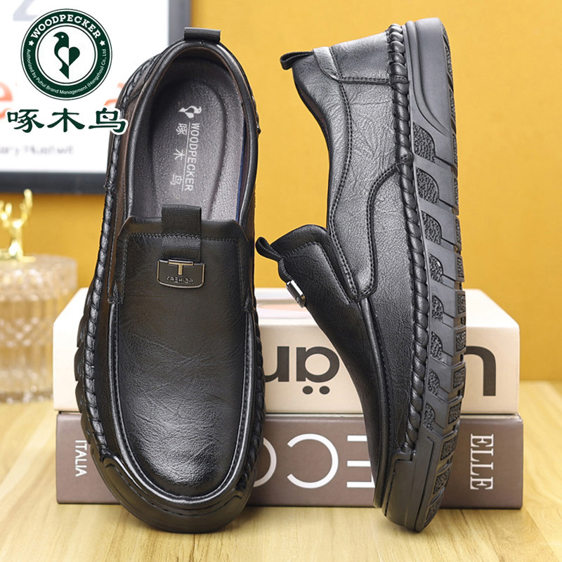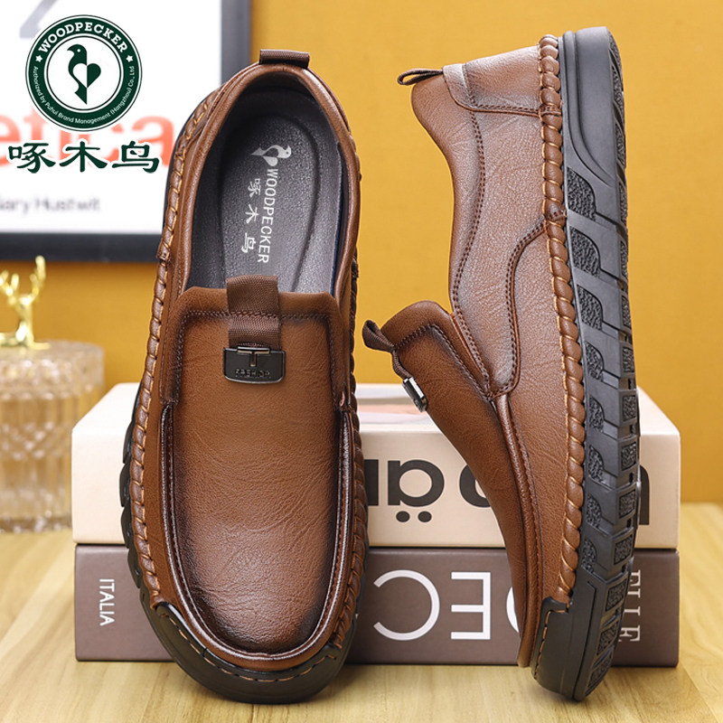 啄木鸟男鞋真皮休闲皮鞋男软底防滑驾车鞋中老年爸爸鞋透气手工鞋