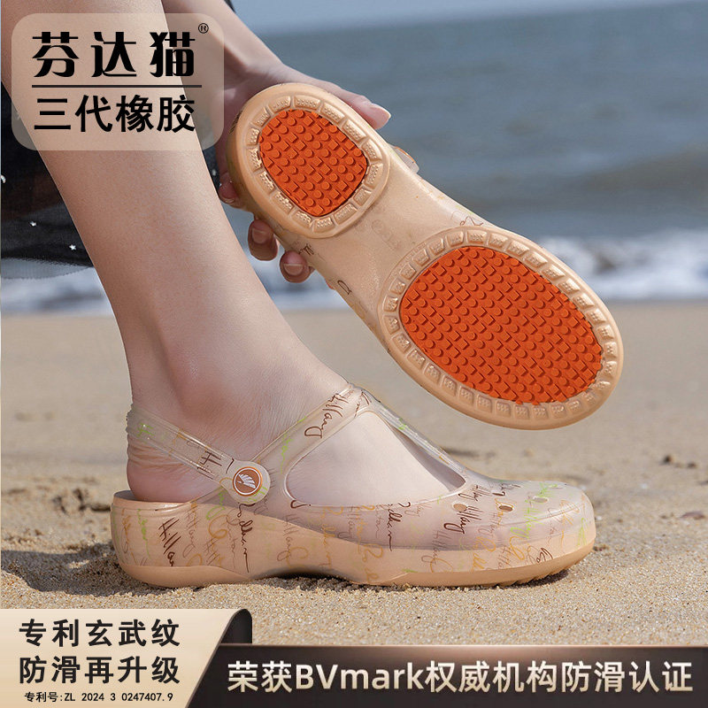 洞洞鞋女2025夏防滑软底厚底孕妇凉鞋包头拖鞋高端海边沙滩果冻鞋
