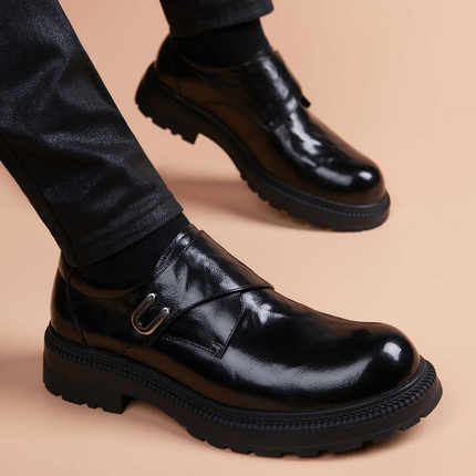 头层牛皮休闲皮鞋男款真皮2025新款透气英伦风商务厚底增高孟克鞋