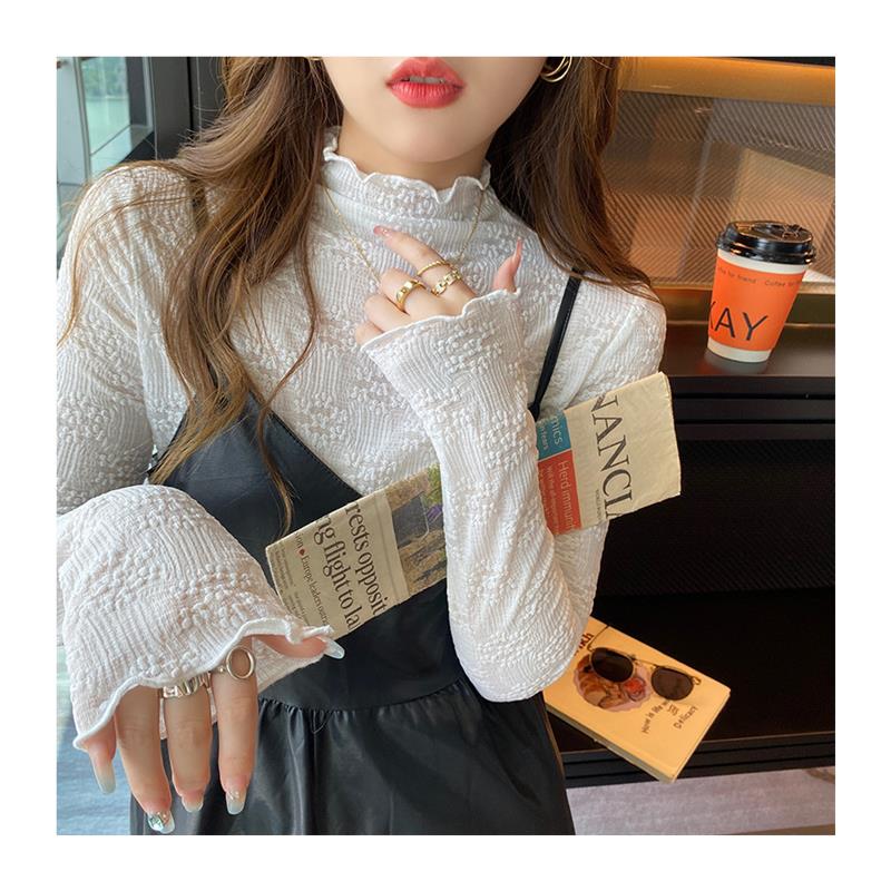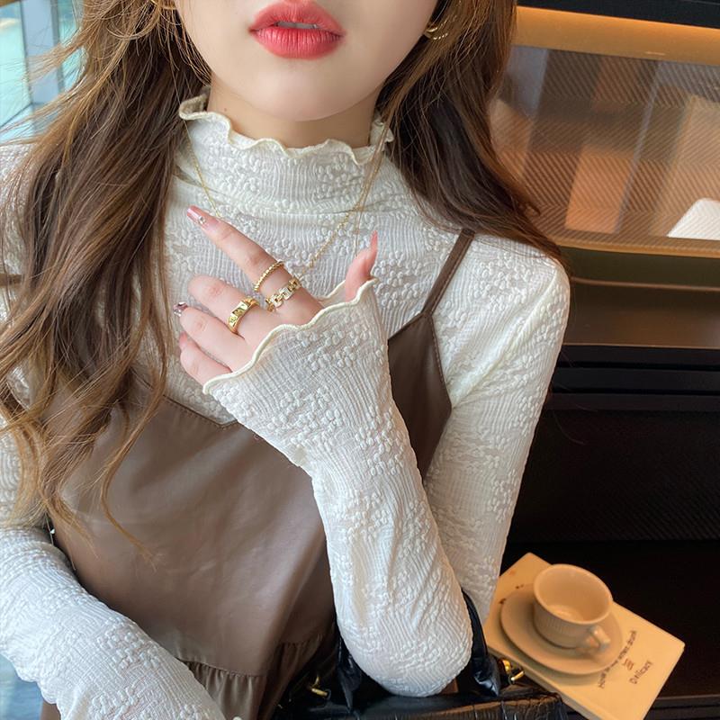 蕾丝打底衫2025新款秋冬女白色内搭高级感叠穿网纱半高领薄款上衣