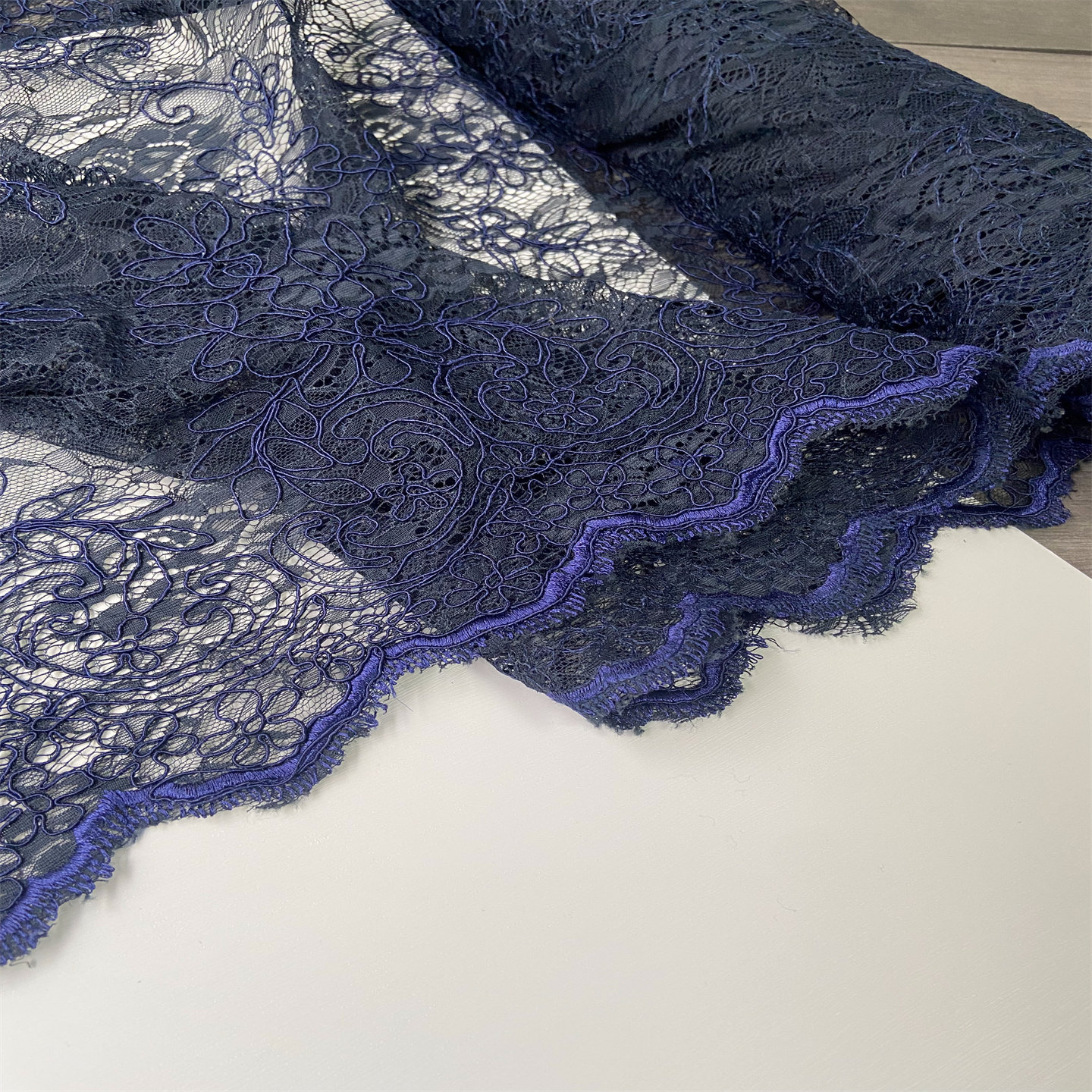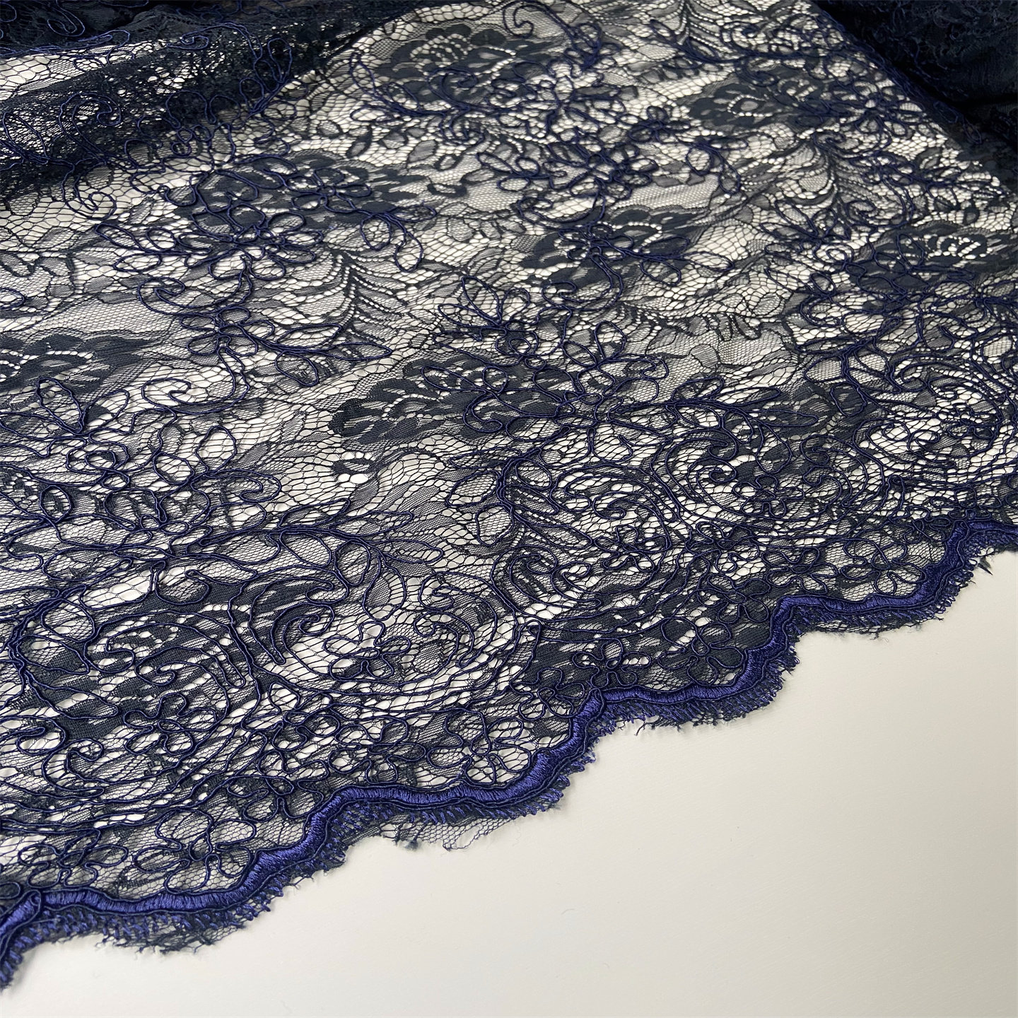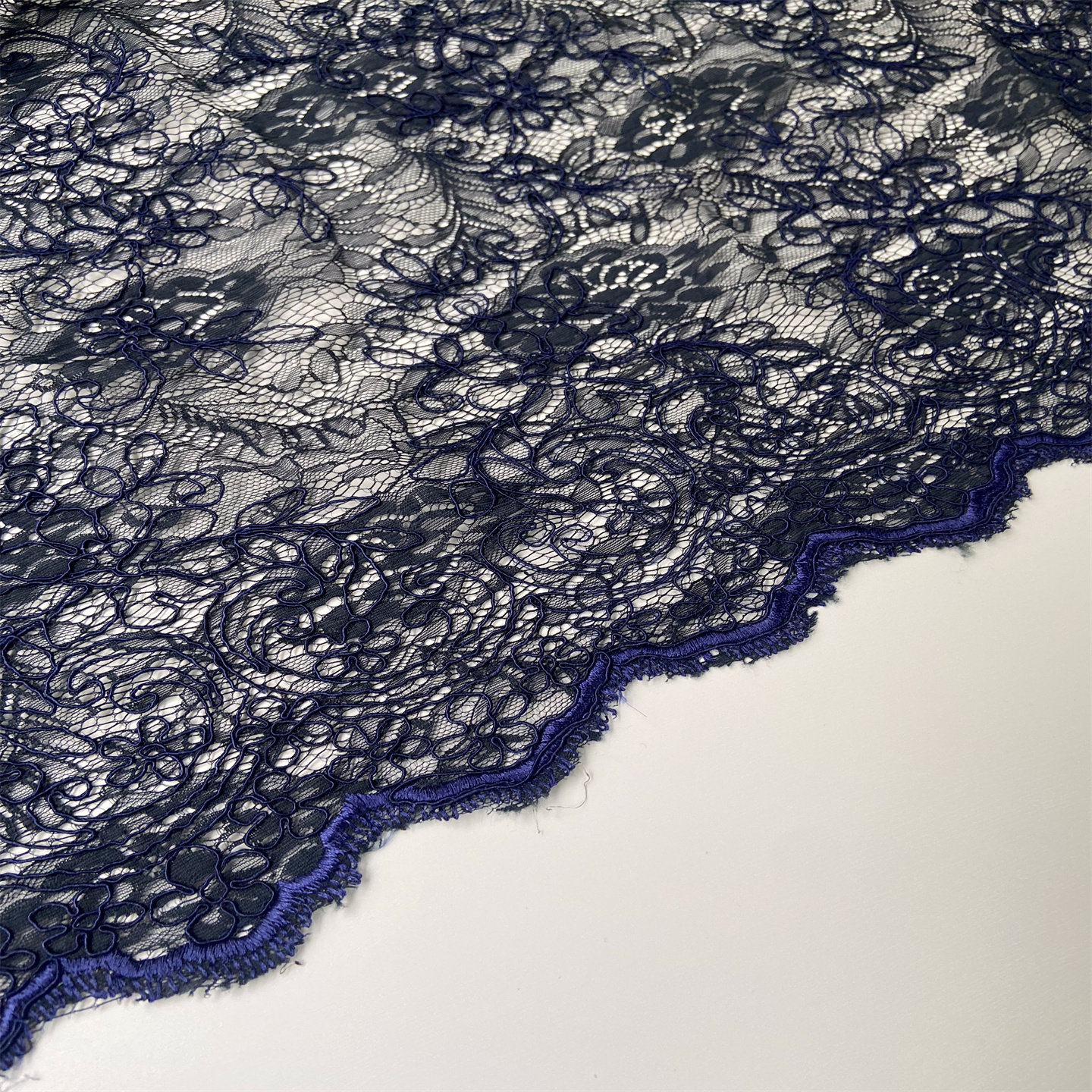 高端礼服厂尾货波浪边性感意大利蓝色精致龙骨蕾丝时装面料设计师