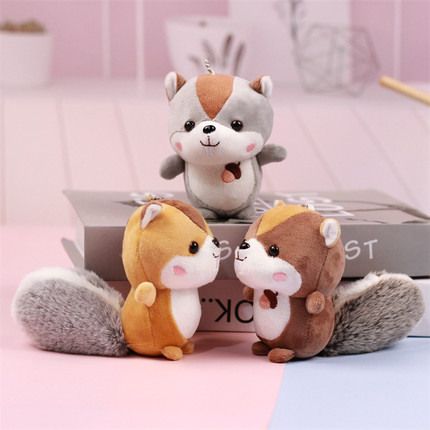 可爱小松鼠毛绒玩具公仔创意长尾巴松鼠玩偶女生书包钥匙扣挂饰品