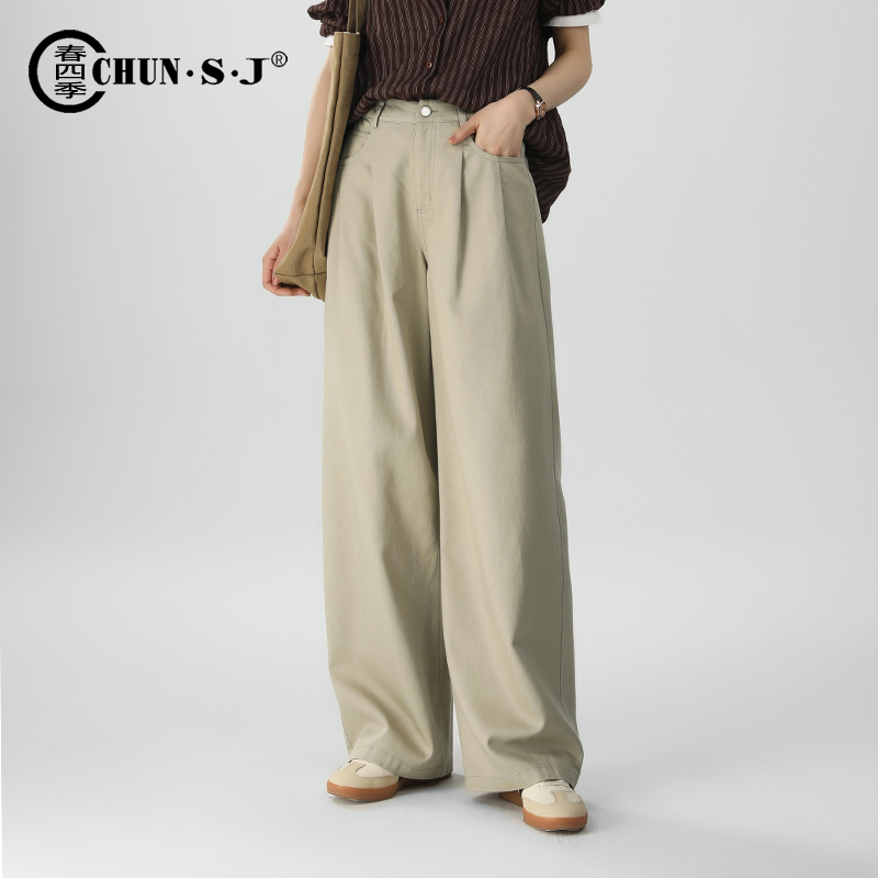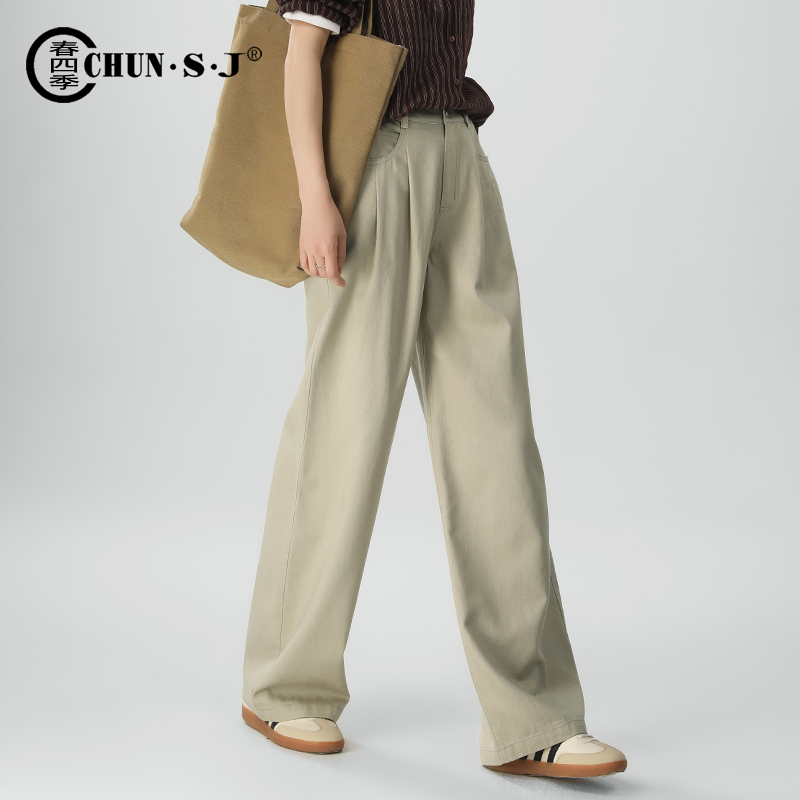 米色阔腿裤女2025新款春夏天丝棉裤子垂感休闲裤女裤高腰直筒裤