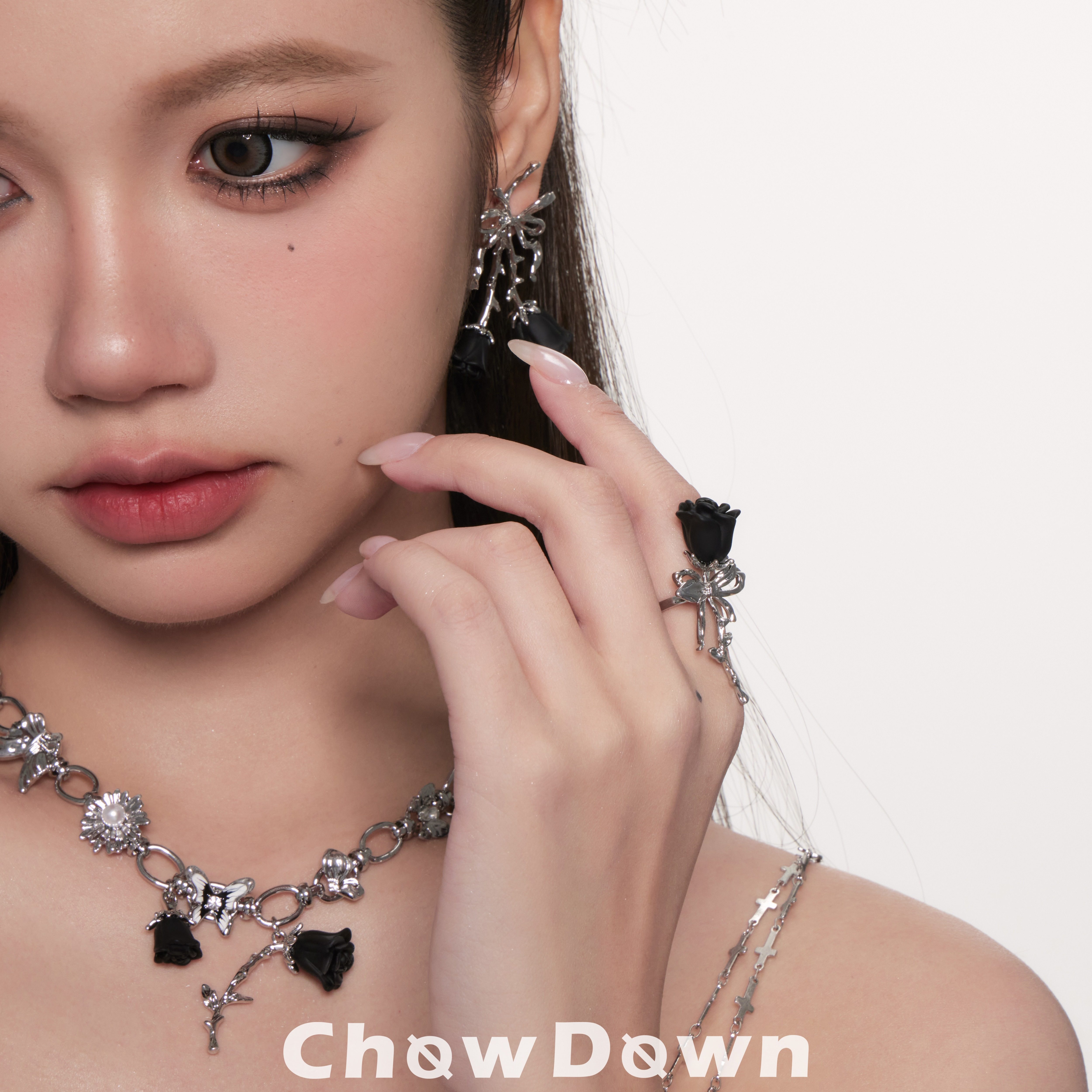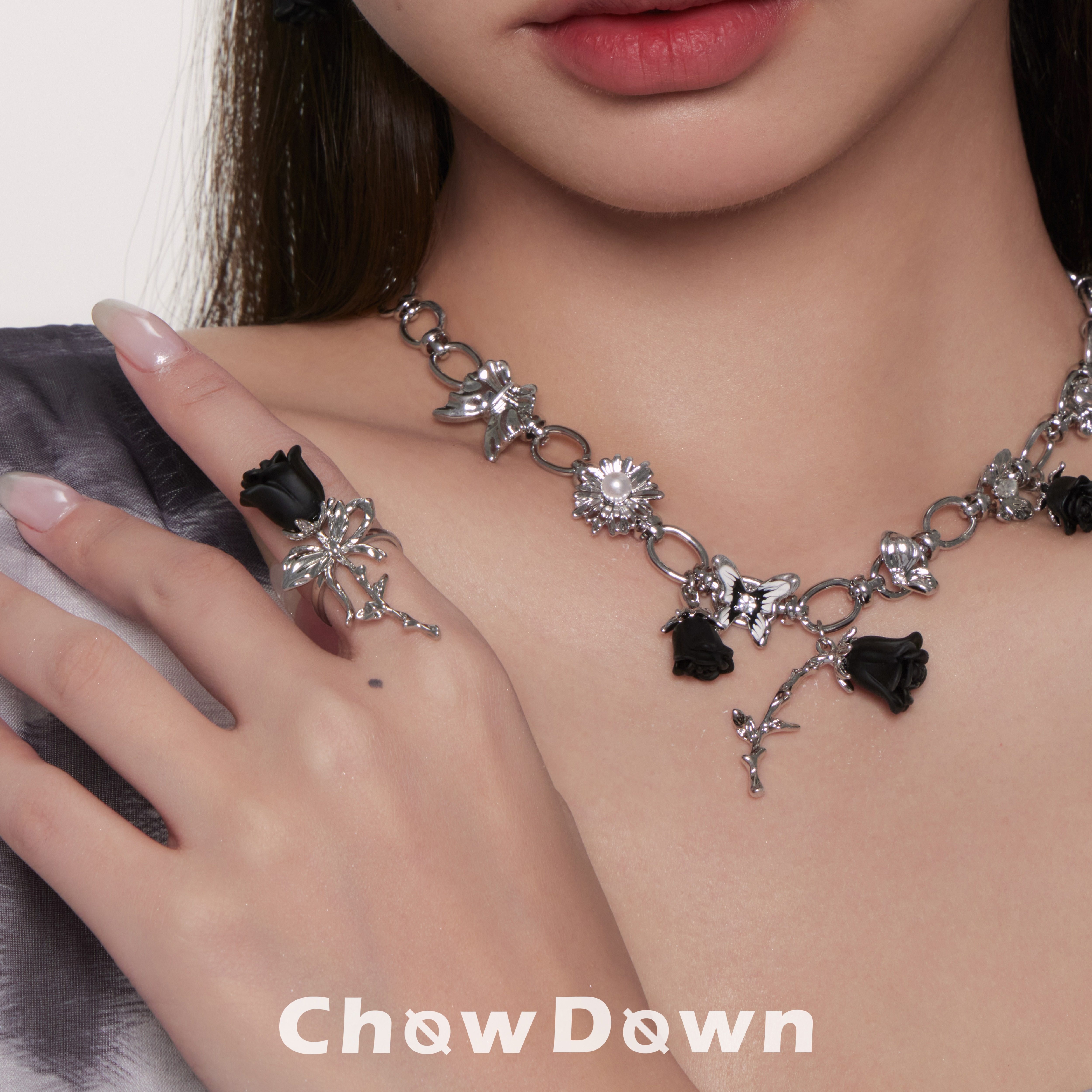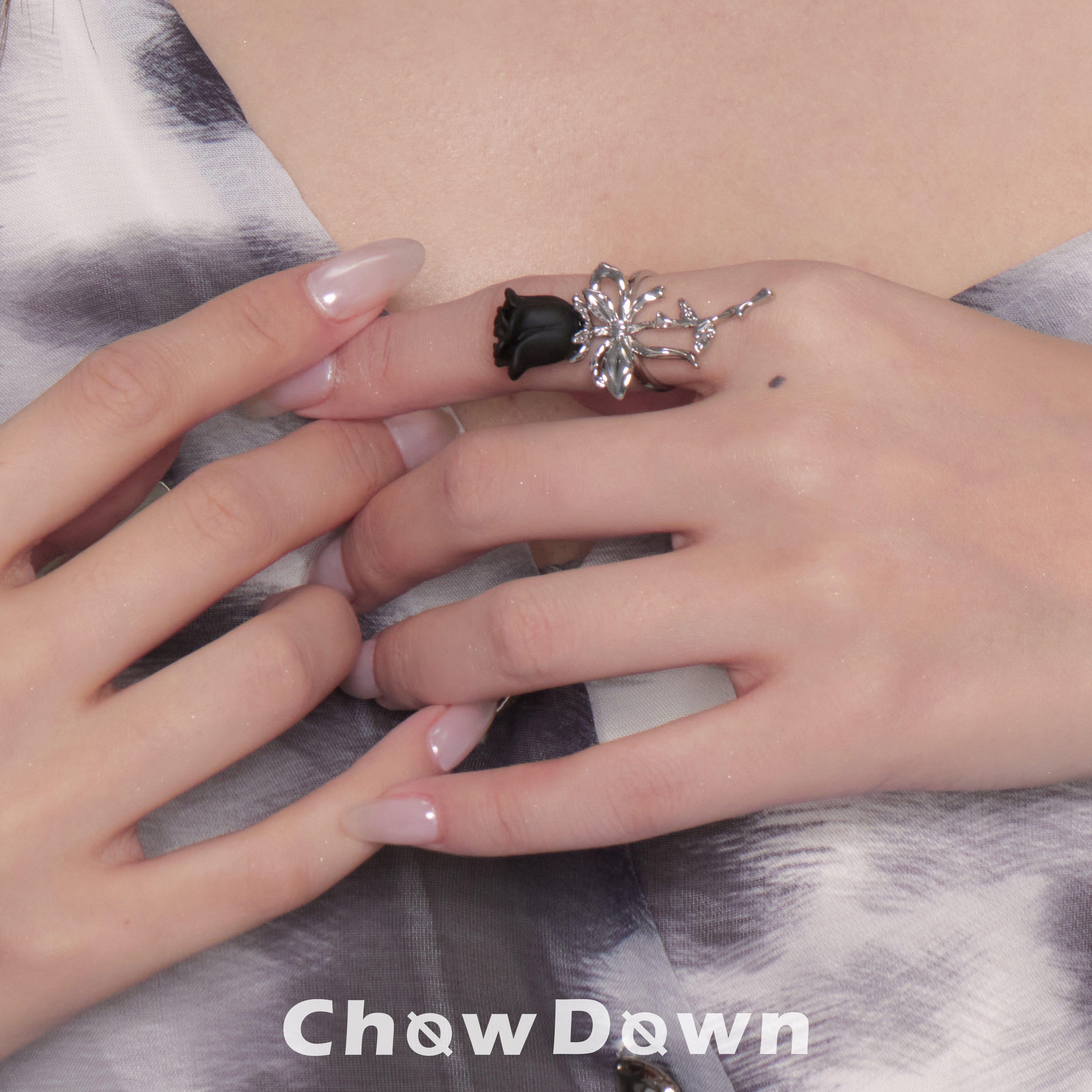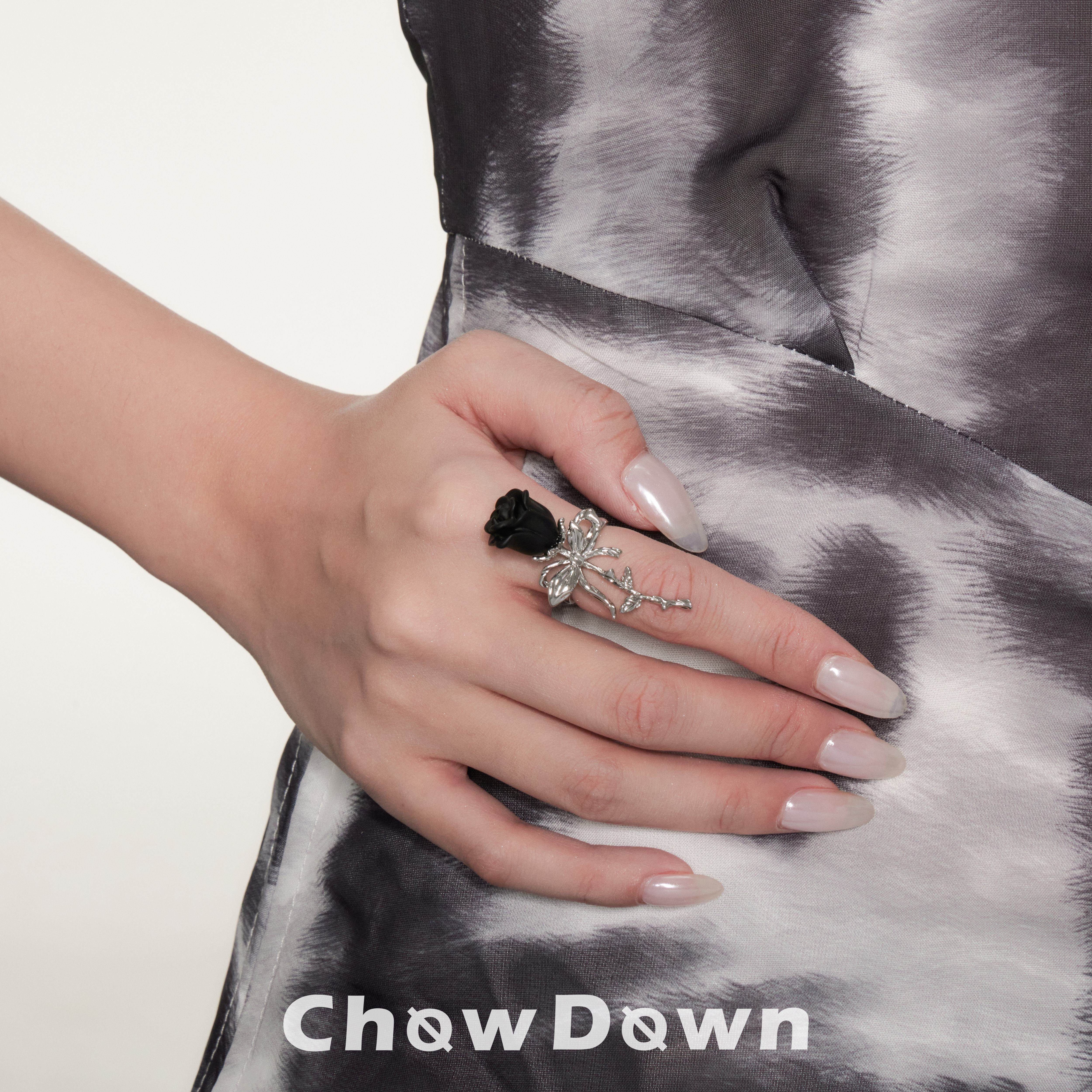 [明星同款]CHOWDOWN原创暗夜玫瑰开口可调节戒指个性时尚高级精致