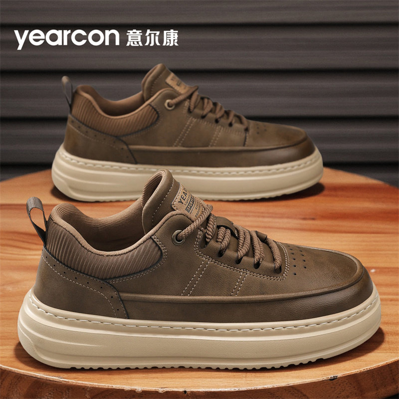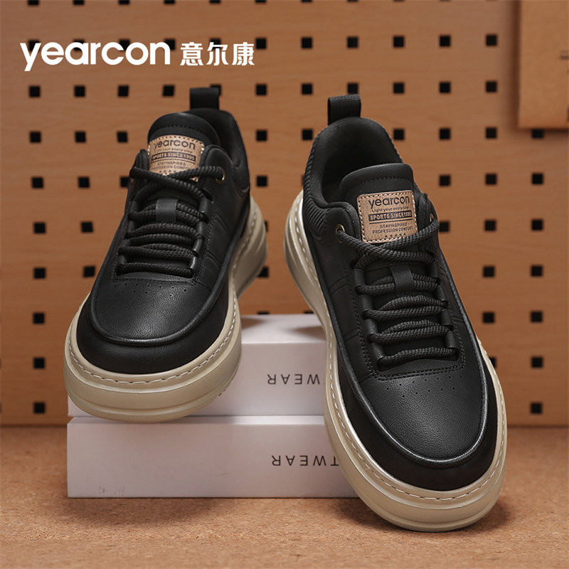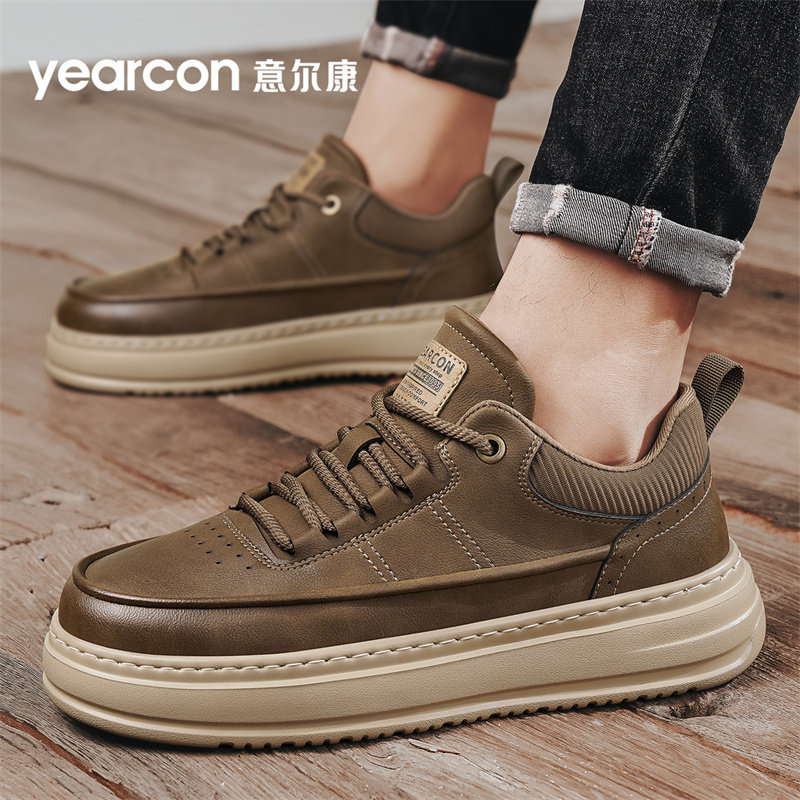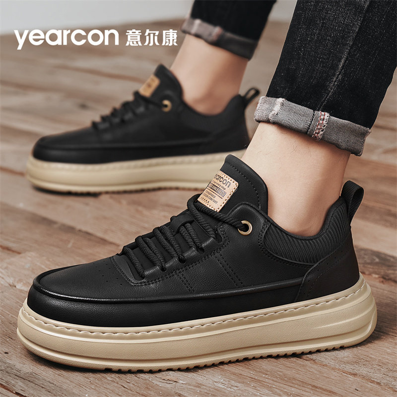 意尔康男鞋秋季2025新款潮厚底增高板鞋低帮鞋子高端男士休闲皮鞋