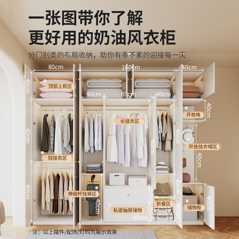 衣柜卧室家用法式实木储物柜网红奶油风收纳柜轻奢简约儿童大衣橱
