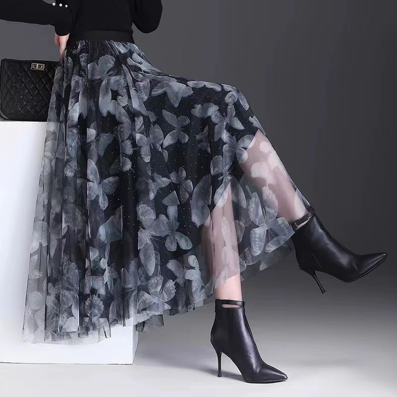 印花半身裙女新款中长款百褶裙高档高腰百搭a字裙显瘦新款碎花裙