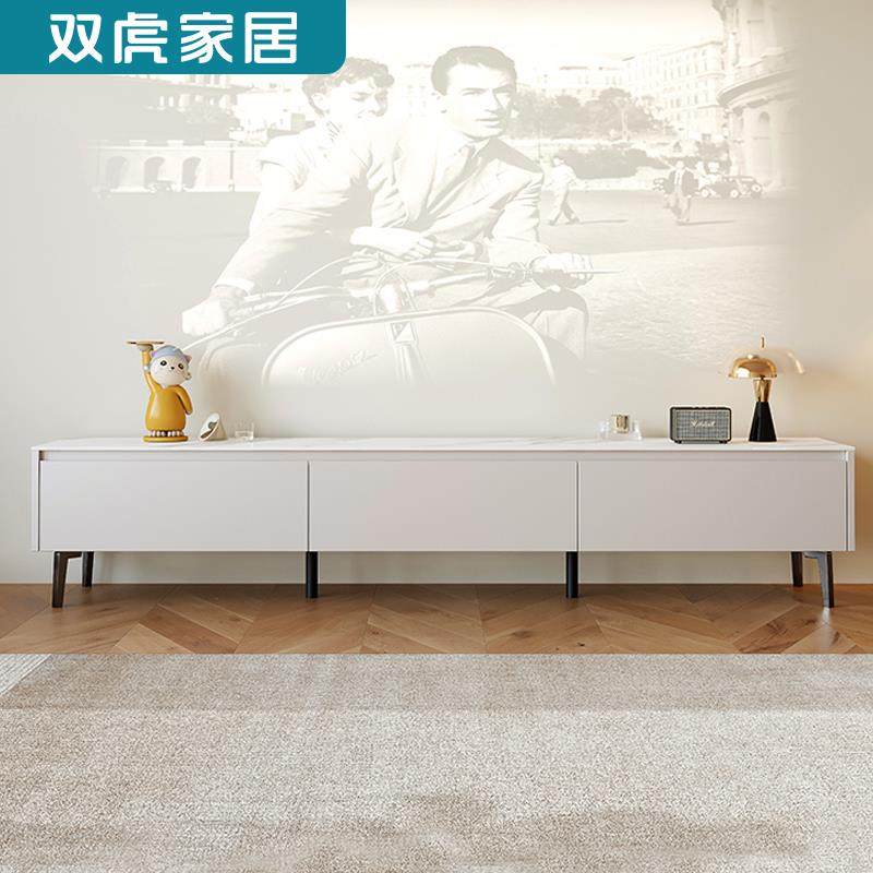 双虎悬空岩板电视柜现代简约轻奢奶油风茶几客厅家用小户型23