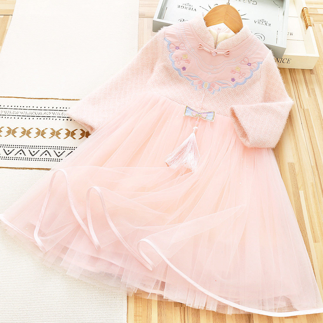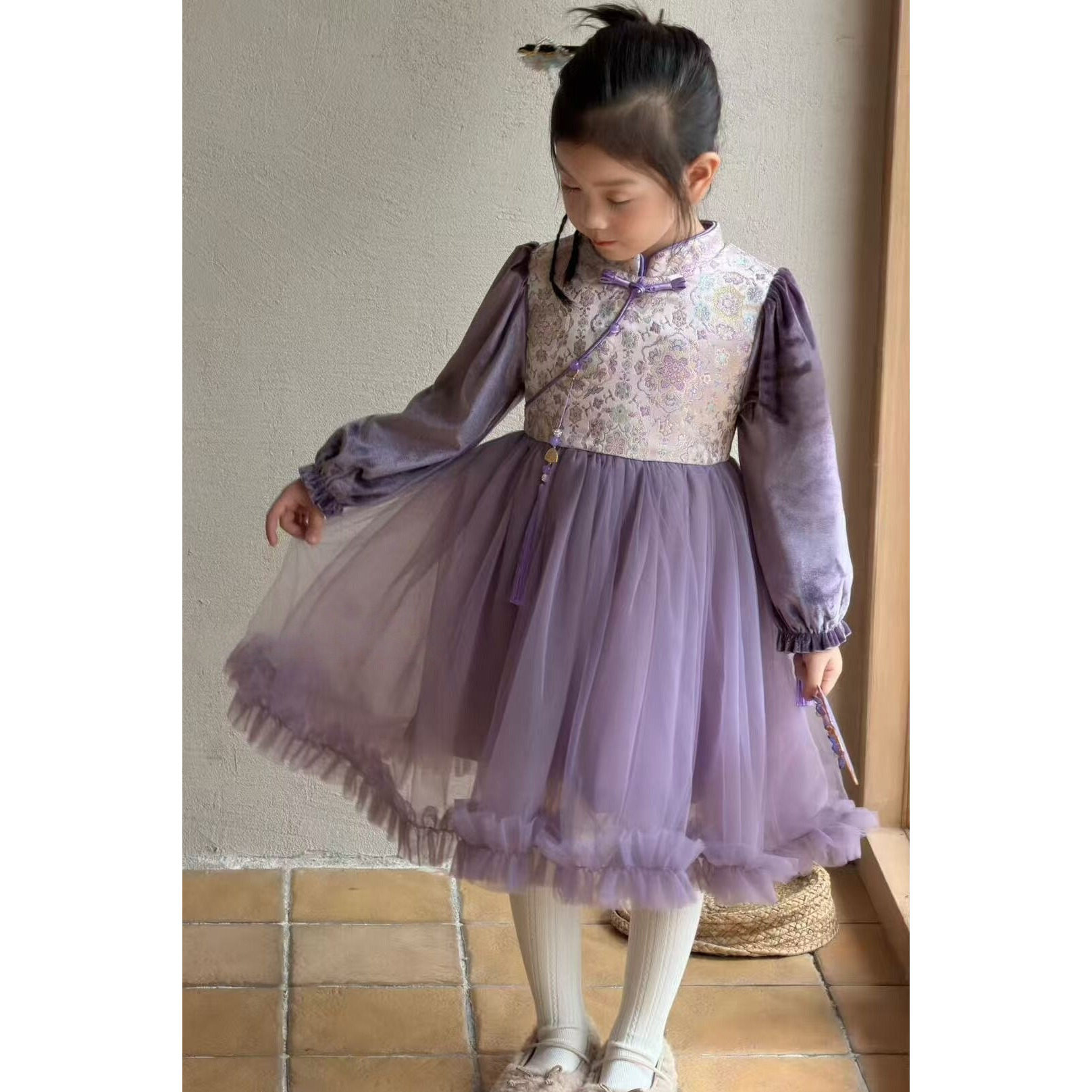 女童秋冬公主裙长袖加绒纱裙女宝加厚旗袍中小童国风新年连衣裙子